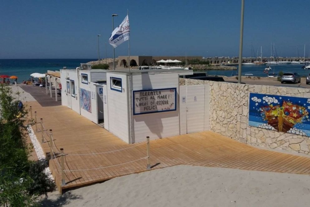 Ci sono le spiagge degli ignoranti e quelle delle vacanze intelligenti. All’improvviso in questa estate 2017 spuntano i lidi ideologici, quelli dei nostalgici del fascismo (ignorantissimi) ma per fortuna, giù in fondo allo Stivale, all’orizzonte si vede sventolare la bandiera blu: ed è quella della trasparenza marina ma soprattutto della speranza, piantata sulla sabbia de “La Terrazza. Tutti al mare! Liberi di essere felici”. Uno stabilimento balneare unico nel suo genere: è la prima spiaggia attrezzata per malati di Sla (Sclerosi laterale amiotrofica) e le loro famiglie. Siamo sulla spiaggia libera di San Foca (Marina di Melendugno, provincia di Lecce), un tempo nota per lo sbarco dei migranti scappati dalla fame e dalla guerra in cerca di un futuro migliore, ma dal 2015, anno dell’inaugurazione - grazie ai primi fondi raccolti con un’operazione dal basso di cittadinanza attiva ed alla presenza di don Luigi Ciotti diventata, «un passo alla volta», l’oasi di riposo e occasione di normalità per chi tutti i giorni deve fare i conti contro il terribile Morbo.