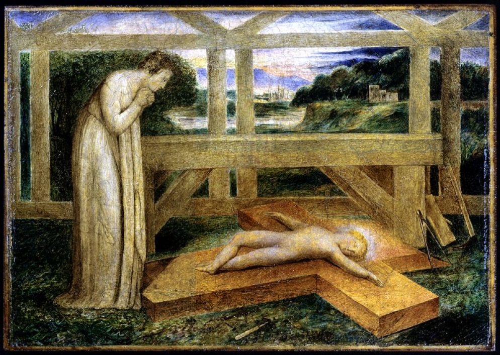 William Blake, Il Cristo Bambino dormiente sulla croce. 1799-1800, tempera su tela, 27,0x38,7 cm. Victoria Albert Museum. Londra