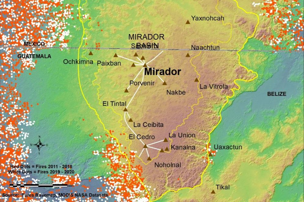 Lo studio interessa l'area del bacino carsico Mirador-Calakmul, che si estende dalla giungla di Peten, nel Guatemala settentrionale, allo stato di Campeche, nel Messico meridionale. In questa zona i ricercatori hanno identificato anche piramidi, campi per il gioco della palla e importanti opere di ingegneria idrica, tra cui serbatoi, dighe e canali di irrigazione. Si ritiene che molti degli insediamenti fossero controllati dalla metropoli oggi nota come El Mirador.