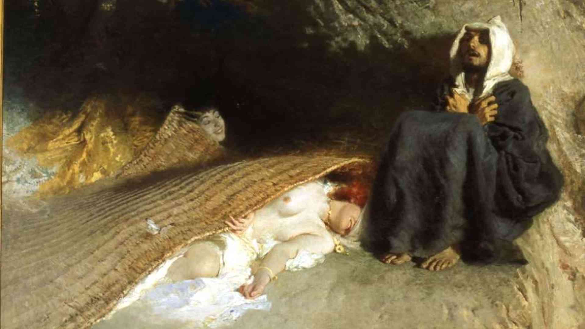 Possiamo apprezzare quindi al meglio il lavoro di composizione di Morelli, che partiva da un’analitica e vastissima preparazione attraverso decine di disegni che studiavano con cura ogni personaggio e ogni particolare delle tele finali. Si può pertanto notare come il pittore sia stato capace di fondere molte influenze e suggestioni, da Rembrandt a Goya fino ai Preraffaelliti e alle evocazioni orientaliste, riuscendo a trovare però la misura del tutto personale di uno stile incisivo e di uno sguardo evocativo. In questo senso la sezione più rilevante della mostra appare quella dedicata ai temi sacri, a cui Morelli ha lavorato molto, partendo idealmente dal celebre Le tentazioni di sant’Antonio, tema caro al simbolismo risolto dal pittore con il gioco di contrasti tra l’erotismo delle figure femminili e l’allucinata lotta ascetica del monaco eremita. Un valore speciale hanno così le opere dedicate alla figura di Cristo e a una rilettura delle iconografie tradizionali, in una rarefazione delle presenze umane e un’intensificazione dei contrasti drammatici, dove spesso è il respiro mistico del deserto a dominare la potenza di immagini dove il Redentore predica, guarisce gli ossessi o veglia gli Apostoli addormentati, in opere segnate da un accento visionario che prelude agli sviluppi futuri dell’arte del Novecento.