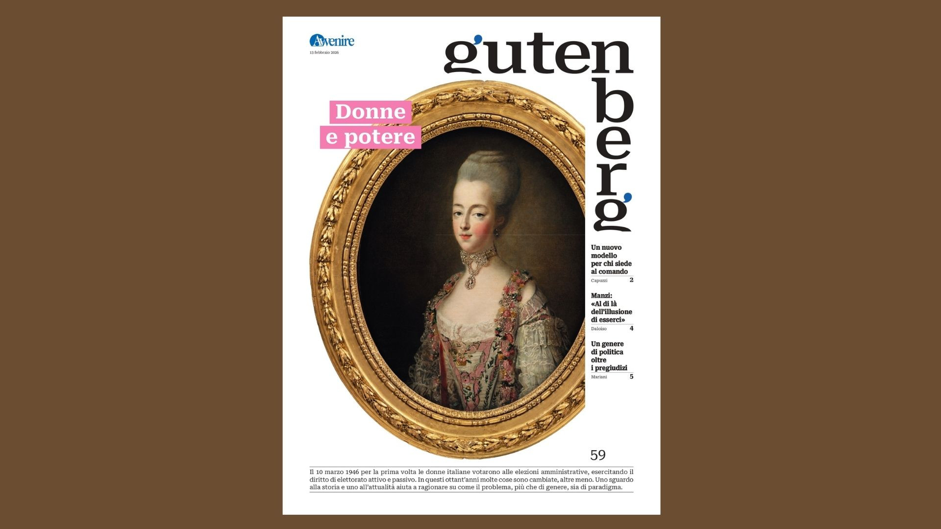 Il 10 marzo 1946 per la prima volta le donne italiane votarono alle elezioni amministrative, esercitando il diritto di elettorato attivo e passivo. In questi ottant’anni molte cose sono cambiate, altre meno. Uno sguardo alla storia e uno all’attualità aiuta a ragionare su come il problema, più che di genere, sia di paradigma. A “Donne e potere” è dedicato il nuovo Gutenberg, l’inserto culturale di “Avvenire”.