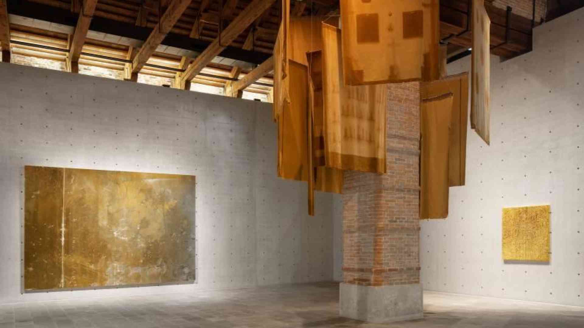 Si tratta dunque di una esplorazione dei valori che “spirituale” e persino “sacro” possono assumere nell’arte contemporanea. La scansione, molto pausata, struttura la mostra in una serie di “cappelle” che nelle intenzioni dei curatori interrompono il flusso soverchiante dell’«era della saturazione delle immagini e della loro appropriazione indebita». Gli artisti sono i più vari. Si va da Josef Albers a James Lee Byars, Francesco Lo Savio, Sherrie Levine, Agnes Martin. David Hammons, Paulo Nazareth, Theaster Gates, On Kawara, Michel Parmentier, Philippe Parreno, Robert Ryman, Michel Parmentier, Chen Zhen… Un concetto spaziale di Fontana (ma è discutibile la scelta della retroilluminazione) e il superbo Ttéia 1, C, architettura impalbabile e mutevole di fili d’oro e di luce, aprono il percorso. La prospettiva orientale è testimoniata dalle tensioni implicite di Tea in the field di Lee Ufan. L’allestimento del Cube di Punta della Dogana costruisce una sorta di sancta sanctorum tra Christmas (Rome), 2012 di Danh Vo e le grandi superfici dorate di Rudolf Stingel, tutti lavori basati su impronte e tracce, ossia su una forma radicale di presenza. E poi la ricostruzione della cappella ottagonale (struttura quanto mai simbolica) in cui Roman Opałka aveva collocato sette dei suoi Détail, scrittura del corpo del tempo nell’alveo dell’infinito. Il percorso si conclude con La nona ora di Maurizio Cattelan e la gabbia iridescente di Kimsooja nel Torrino.