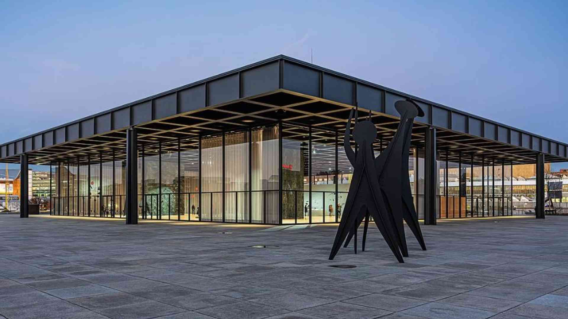Questo edificio è il diamante che Mies ha incastonato nel cuore di Berlino, riscattando di fatto negli anni ’60 la storia dell’identità tedesca ferita dalla Grande Guerra, poi dall’avvento del nazismo e infine dalla divisione creata dal Muro in due nazioni sorelle. Ugualmente, ma senza lasciare un segno materiale, negli anni ’20 elaborando progetti sul corpo della città ingigantito dalla Legge del Groß-Berlin, segnata dal contrastante ritratto di una compagine sociale dominata da una massa ridotta alla miseria dal disastro economico e politico, a fronte di un ceto borghese che la trasformò nella Babilonia d’Europa; su questo sfondo Mies, già all’inizio della sua opera, progettò steli di cristallo come profezie del moderno splendide e scioccanti nell’orizzonte urbano dove il sogno panellenico si decomponeva fra protesta operaia e ludi cabarettistici. Sappiamo come andò a finire, e forse non è un caso che, trent’anni dopo, rientrando dall’America, abbia progettato per Berlino un tempio a un nuovo ordine classico della modernità.