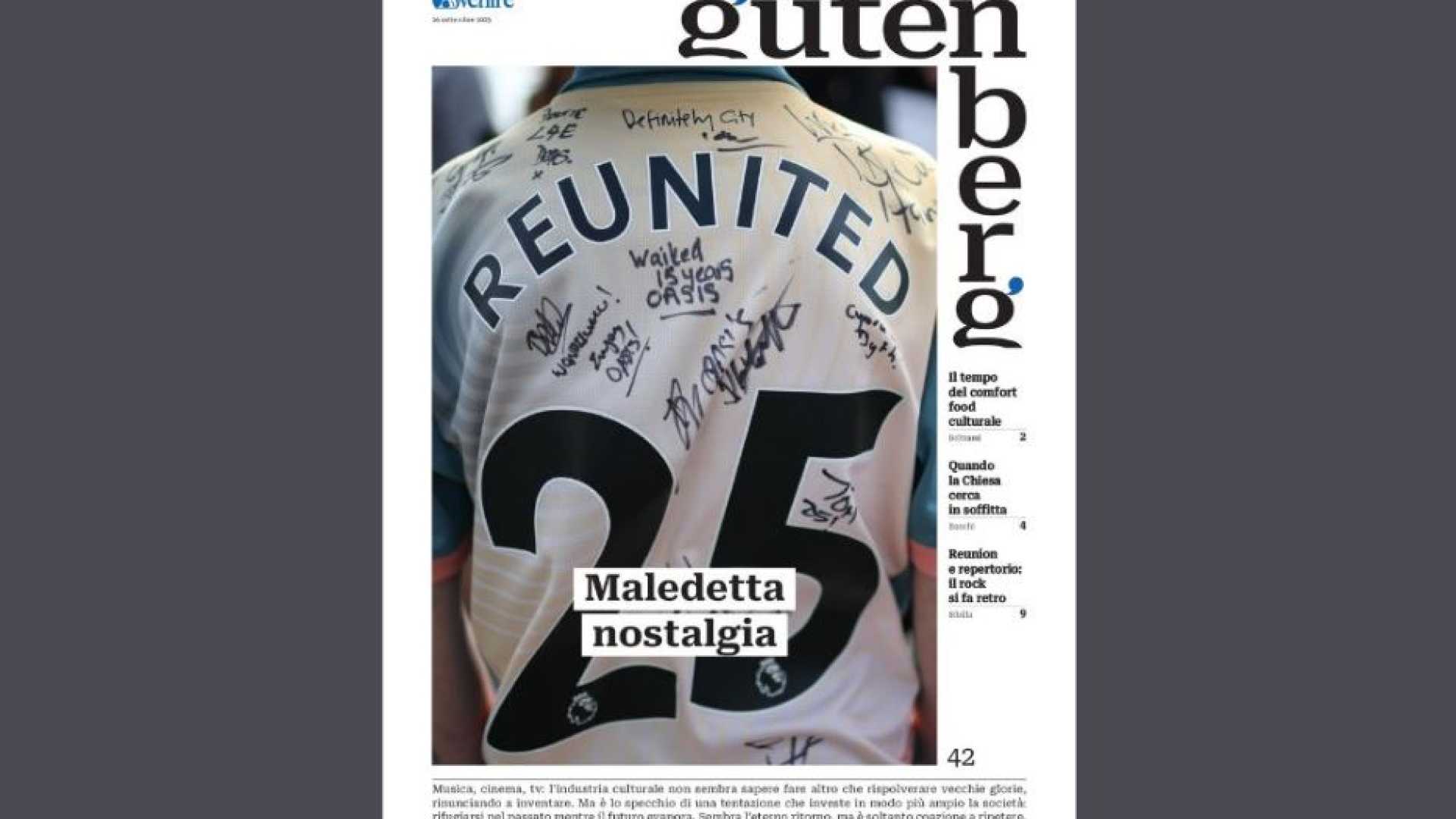 Musica, cinema, tv: l’industria culturale non sembra sapere fare altro che rispolverare vecchie glorie, rinunciando a inventare. Ma è lo specchio di una tentazione che investe in modo più ampio la società: rifugiarsi nel passato mentre il futuro evapora. Sembra l’eterno ritorno, ma è soltanto coazione a ripetere. Per “Gutenberg” del 26 settembre è “Maledetta nostalgia”: l'inserto culturale di "Avvenire" riflette, con Alessandro Beltrami, su come la nostalgia dilaghi anche tra le generazioni più giovani, amplificata dalle possibilità del digitale di rigenerare il passato. Tra amarcord e replicanti, l’esito è una sorta di comfort food culturale che tritura e rimpasta il già noto, proprio come la IA.