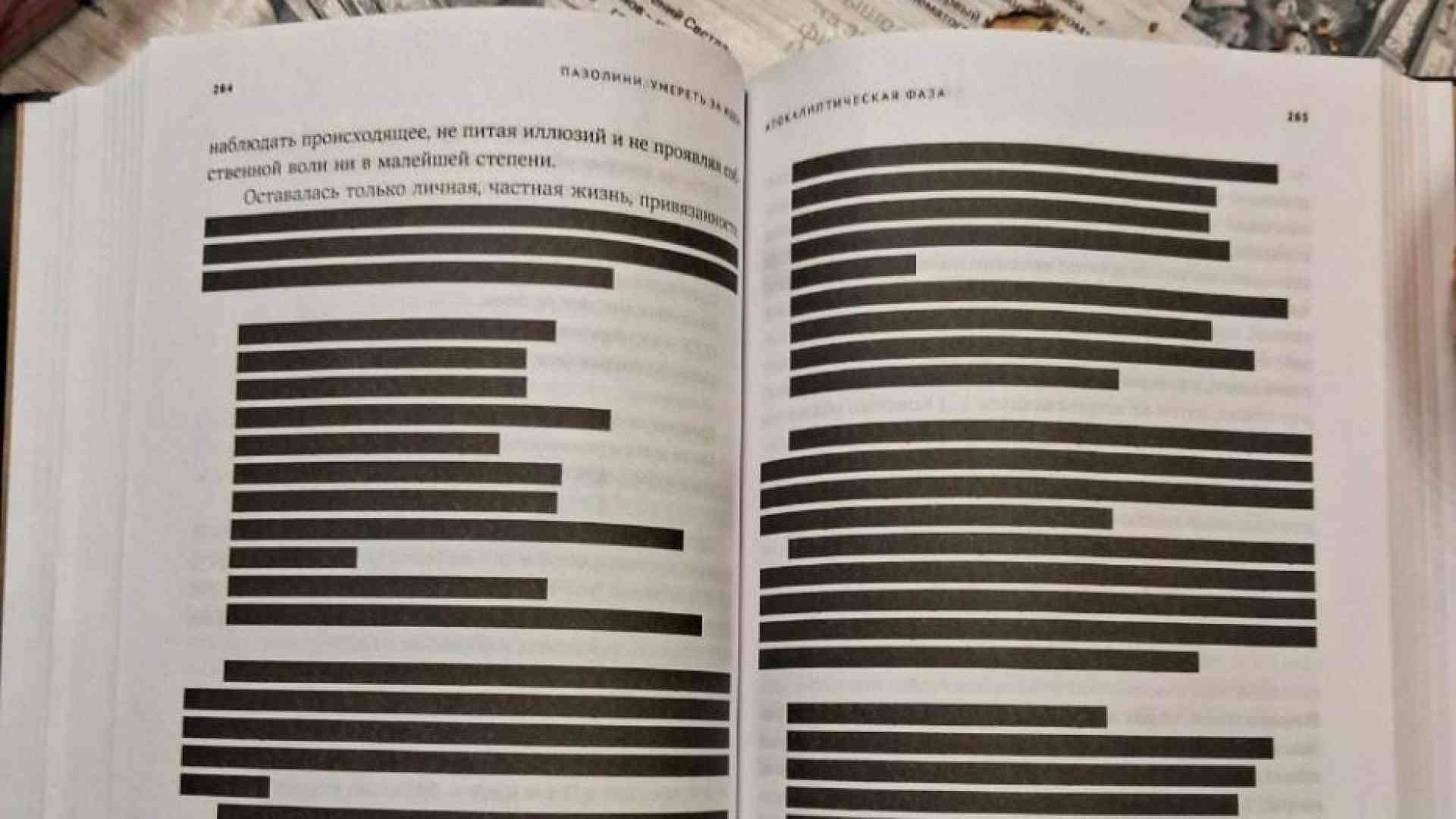 Ma a questo punto è successo qualcosa di inatteso: la casa editrice russa ha deciso di non nascondere i tagli, bensì di evidenziarli con delle strisce di inchiostro nero. Un gesto politico (che mi dicono ora potrebbe costarle caro...) per denunciare la brutalità della censura. Un po’ come fece Bompiani nel 1941 con l’antologia Americana curata da Elio Vittorini, lasciando bianche le pagine che avrebbero dovuto contenere i racconti censurati dal fascismo: mi piace pensare che il coraggio di allora del mio editore italiano sia stato raccolto oggi dal mio editore russo.