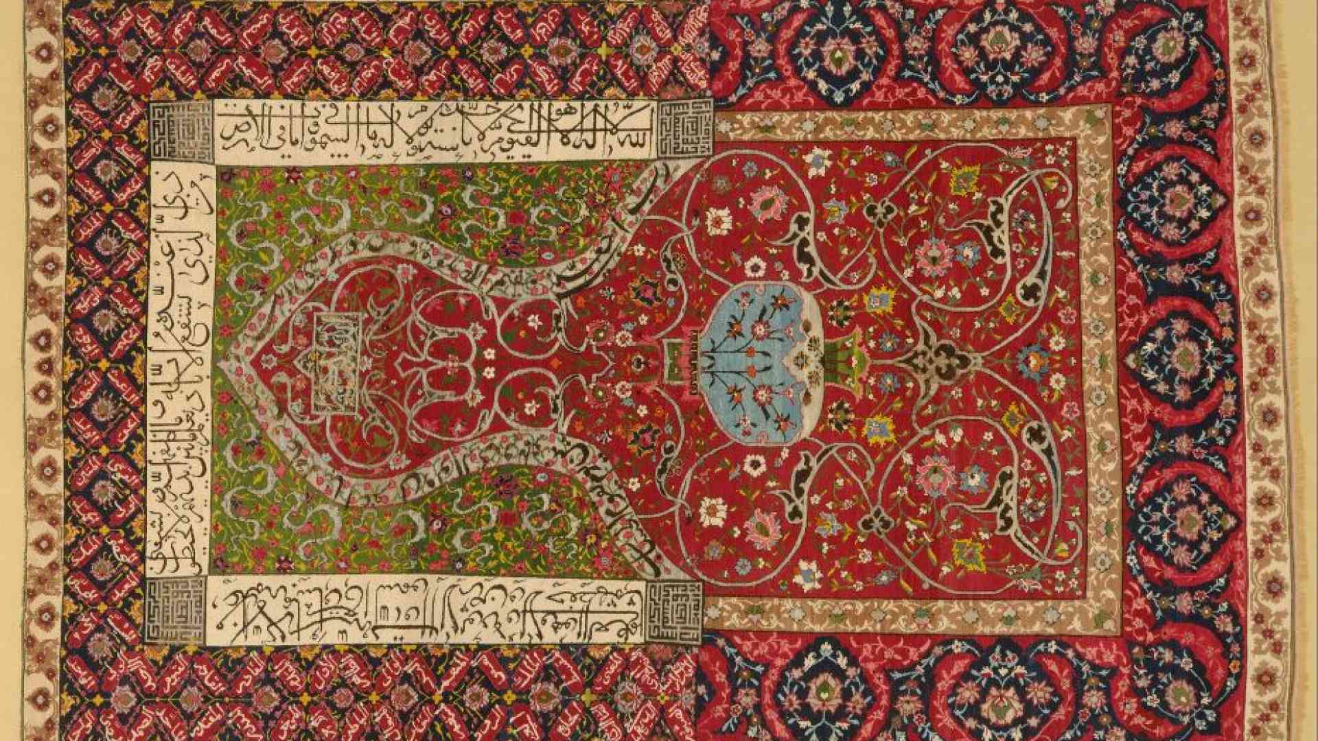 Una melagrana capovolta, colma d’acqua, nel cuore di un mihrab, la nicchia d’accezione islamica, da cui si diramano steli, fiori, feste, festoni fino a saturarne la trama. Il frutto, sacro per i persiani, diventa giara, un vaso, una fonte di vita inscritta all’interno di un’architettura sacra. E ricamata. Perché siamo tra le celestiali volte di un tappeto safavide, nella Persia del Cinquecento, e l’opera d’arte in questione, per nulla “minore” come spesso si è sostenuto nei secoli occidentali, è un capolavoro cosiddetto Kashan Salting a preghiera. Il fondo è color porpora, e lo sfondo della struttura, riprodotta in modo tessile, è un giardino. Di più, un paradiso. La melagrana è il frutto che cresce nell’Eden secondo il testo sacro dell’Islam, il Corano; qui è il centro su cui gravita il mondo, il cosmo in figura piana sul quale pende come una lampada, vibrando il versetto coranico della luce: la presenza divina nella “caverna” del mihrab. Il paradiso è cinto da mura, è circoscritto. E qui lo è dalla bordura, dalla tessitura degli arabeschi puntellati dalla ripetizione del loto. All’infinito, come simbolicamente ogni nodo vuole. Alcuni toni del bordo richiamano i versi del Corano, altri sinuosamente accompagnano l’arco fino al culmine, ma quello che conta è il recinto. Il paradiso è un giardino chiuso. E il termine stesso “paradiso” ci viene incontro: il pairidaiza iranico, il persiano paridaida, il greco parádeisos, il latino paradisus. Il gioco è fatto. Il tappeto nasce come manifestazione nomade di un giardino, delimitato, da trasportare nei deserti d’Arabia e nelle steppe turcomanne, dal Gobi a Kizilkum, dal Lut al Negev.