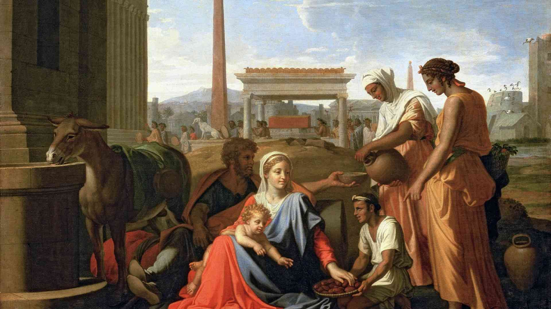La base canonica scritturale della Fuga in Egitto è tanto esigua che la potente eco dell’arte suona quasi assordante. Questa Fuga, diventata tanto famosa, è menzionata esplicitamente solo in uno dei quattro Vangeli, quello di Matteo. E se è possibile metterla in relazione (talvolta in modo fragile, è necessario dirlo) con alcuni testi profetici dell’Antico Testamento che annunciarono tale evento, l’episodio non ebbe riscontro manifesto nel resto del Nuovo Testamento. I più recenti dizionari di patristica specificano che la Fuga in Egitto non fu oggetto di riflessione nei primi secoli cristiani. È marginale l’unico versetto del Corano che si riferirebbe all’Egitto come rifugio di Gesù e di sua madre, interpretazione dibattuta tra gli esegeti. Inoltre, è uno dei rari eventi del ciclo dell’infanzia di Cristo, salvo errori, che non è mai stato celebrato da una festa nel calendario liturgico, tranne quello della Chiesa Ortodossa Copta, tra cui figura come “le piccole feste di Cristo”. Infine, la riflessione teologica su questo episodio non sembra essere stata molto abbondante, almeno nella tradizione occidentale, e la ricerca storico-critica attuale sul tema è quanto meno discreta: Erode, infatti, era al soldo dei Romani e l’Egitto fu provincia romana dalla conquista da parte dell’imperatore Augusto nel 25 a.C. Politicamente parlando, che la Santa Famiglia abbia cercato rifugio proprio in Egitto non è scontato. Allo stesso tempo, però, in Egitto vivevano diverse comunità ebraiche fin dal VI-V secolo a.C.