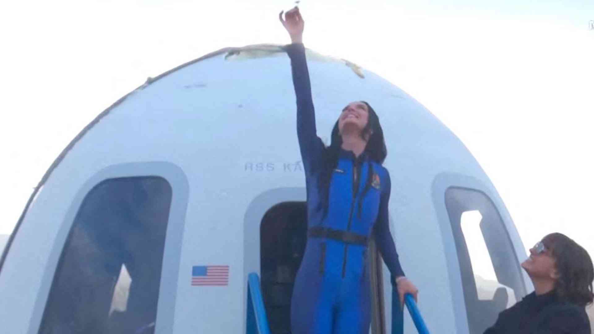 Era a bordo insieme ad altre cinque donne, tra cui Lauren Sanchez, la fidanzata di Bezos. Il decollo è avvenuto nel West Texas poco dopo le 8:30 ora locale (le 15:30 in Italia). Il razzo, completamente automatizzato, è decollato verticalmente e la capsula si è staccata dal razzo vettore, prima di ricadere sulla Terra, frenata da paracadute e da un retropropulsore. Manovre che sono ormai classiche nell'astronautica. L'avventura nello spazio è durata 11 minuti. Si tratta del primo volo spaziale interamente al femminile dopo il volo in solitaria della sovietica Valentina Tereshkova nel 1963. Si tratta anche dell'undicesimo volo suborbitale con equipaggio effettuato dalla Blue Origin, che da diversi anni offre esperienze di turismo spaziale (il cui prezzo non + pubblico) grazie al suo razzo New Shepard. Durante l'esperienza, durata in totale circa dieci minuti, le sei passeggere hanno attraversato la linea di Karman, che secondo una convenzione internazionale segna il confine dello spazio a 100 chilometri.