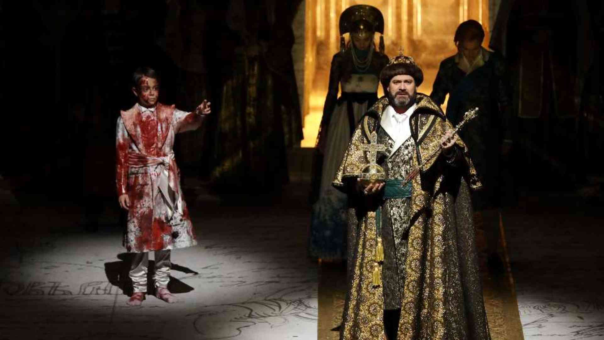 La violenza ha gli occhi di ghiaccio di Grigorij. La violenza cieca di una storia che si ripete, inesorabile. E sembra non aver insegnato nulla. Occhi senza pietà, come quelli di chi dichiara guerra ad un popolo un tempo fratello o di chi alla violenza risponde con la violenza. Silenzio. Boris è morto, ucciso da una congiura di palazzo messa in atto dal Principe Sujskij con il falso Dmitrij – e non come nel libretto, ispirato ad un dramma di Aleksandr Puskin, dal senso di colpa e dal peso del rimorso. All’usurpatore basta (e ci basta per precipitare nell’abisso del male) uno sguardo. Che si posa sui figli di Boris, su Feodor e Ksenija. Soli, su un letto sfatto e impregnato di incubi, abbracciati per farsi forza dopo che hanno visto morire il padre. Uno sguardo ed è subito chiaro che gli occhi di ghiaccio di Grigorij, saranno gli ultimi occhi che i due ragazzi vedranno. Che quello sarà il loro ultimo abbraccio. Perché per loro, poi, ci sarà la morte. Come c’è stata tempo prima per lo zarevic Dmitrij, fatto uccidere da Boris per prendere il potere. Quel potere che ora Grigorij (che si è spacciato per il defunto erede al trono, costruendo abilmente quella che oggi definiremmo una fake news) vuole e ottiene.