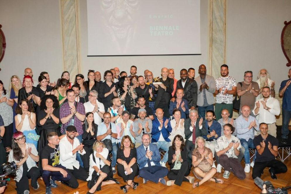 Ciro, Saverio, Tarek, Li Jin, Cuka e Marian non stanno più nella pelle dalla felicità e circondano con affetto applaudendolo il loro regista, Armando Punzo, mentre solleva il Leone d’Oro alla carriera che il Presidente della Biennale di Venezia Roberto Cicutto gli ha consegnato ieri a Ca’ Giustinian su indicazione dei direttori di Biennale Teatro Stefano Ricci e Gianni Forte (ricci/forte), mentre il Leone d’Argento è andato al collettivo fiammingo FC Bergman.