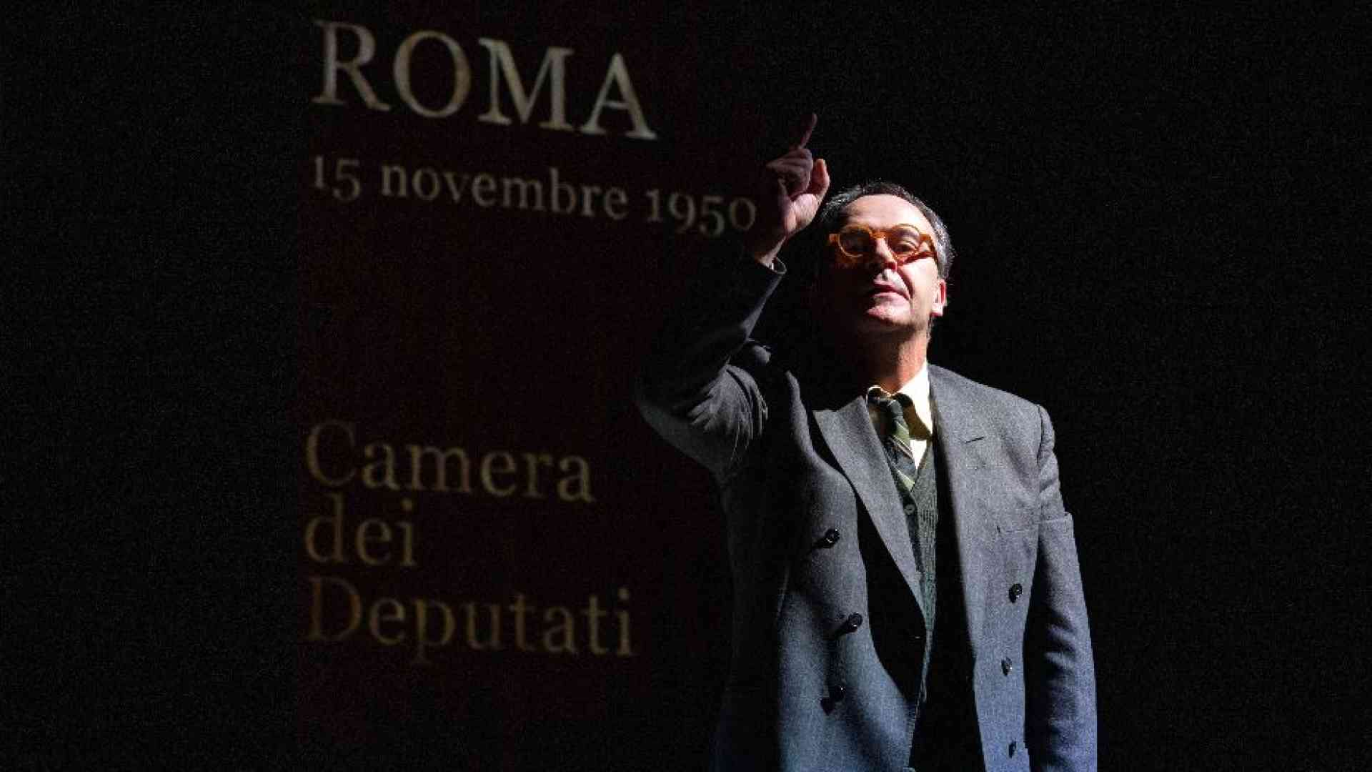 Ce lo ridà in un’ora e mezza di spettacolo lo stesso Alcide De Gasperi col suo corpo a corpo con i suoi antagonisti, lui atlantista dapprima entusiasta e poi pragmaticamente consapevole della necessità di compromessi per bloccare l’avanzata bolscevica della Russia di Stalin. Con il passionale Togliatti un duello, umanamente rispettoso, fra due visioni della vita, dello Stato e del popolo totalmente opposte; con l’ambiguo ambasciatore americano le diatribe sull’indipendenza energetica italiana affidata a Mattei. E poi i dubbi rivolti a Dio sotto forma di preghiera nella chiesa di San Luigi dei francesi, la tenerezza nei confronti della figlia, i discorsi appassionati in Parlamento, fino alla morte nel 1954, in cui il concetto di democrazia viene motivato cristallino come noi oggi non siamo più abituati a sentire.