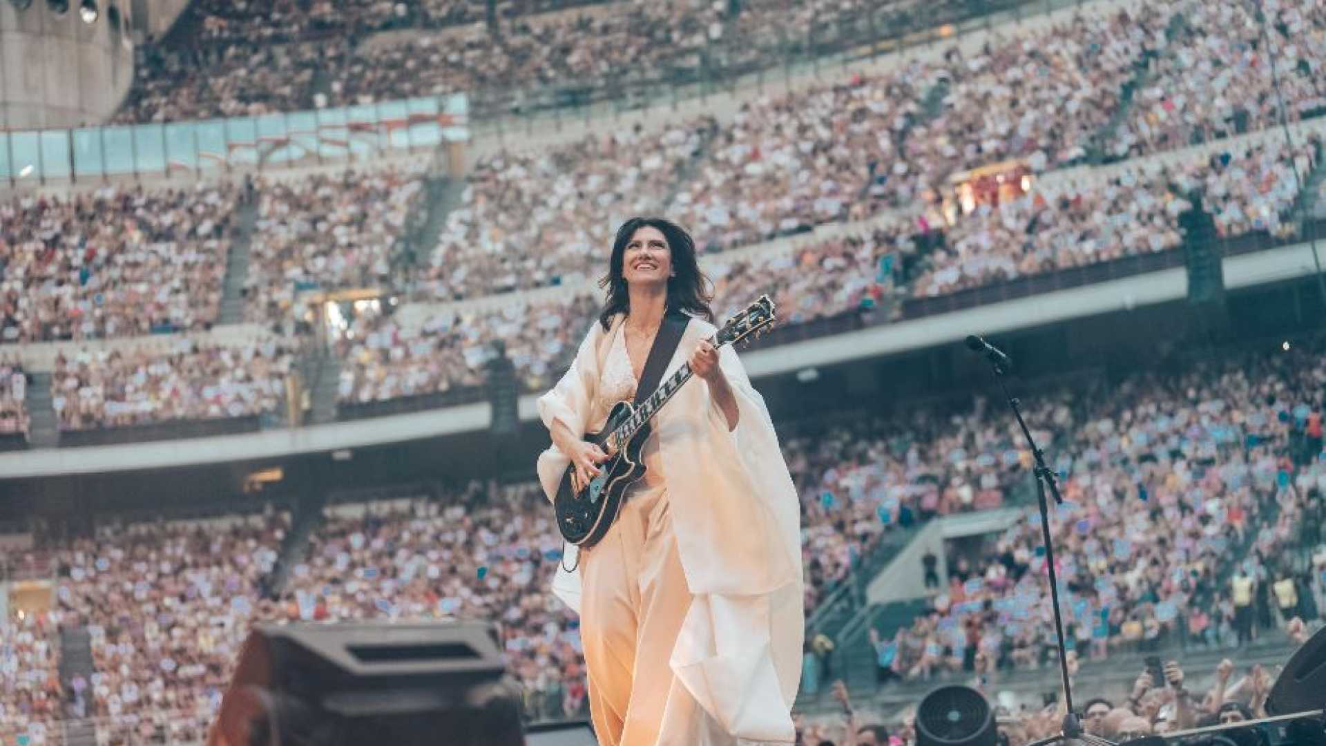 Ciliegiona sulla torta, Giorgia ed Elisa (che ha dato ormai tutta la sua voce fino in fondo) che mandano in visibilio lo stadio con La cura e poi mandano un messaggio forte con il brano contro le atrocità della guerra e le dittature Together: “Abbiamo sempre bisogno di pace” grida Elisa e appare sullo schermo la bandiera palestinese con scritto "Free Gaza". A chiudere questa festa che davvero dimostra quanto sia bella la musica italiana quando è bella, i bis con Elisa e Ligabue e la loro Gli ostacoli del cuore.