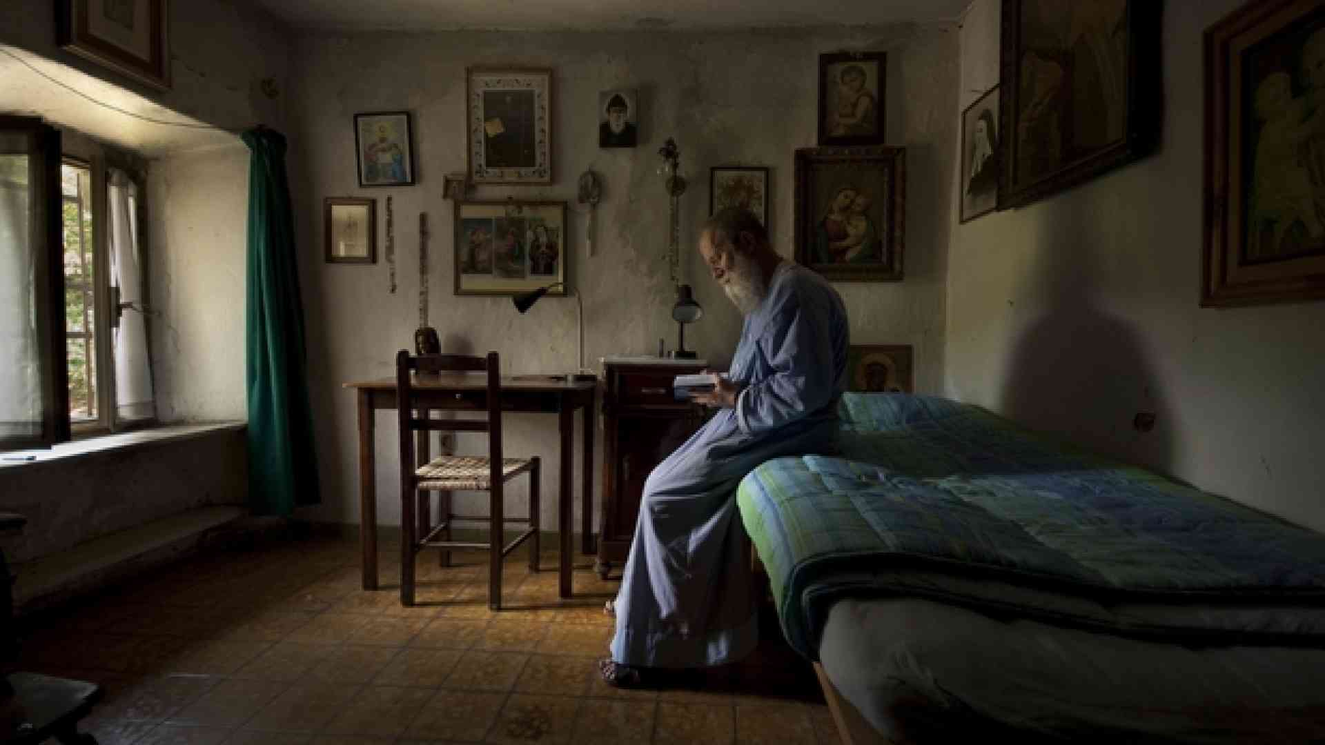 Fra Claudio Canali nella sua cella dell'eremo di Minucciano in provincia di Lucca (foto Avvenire)