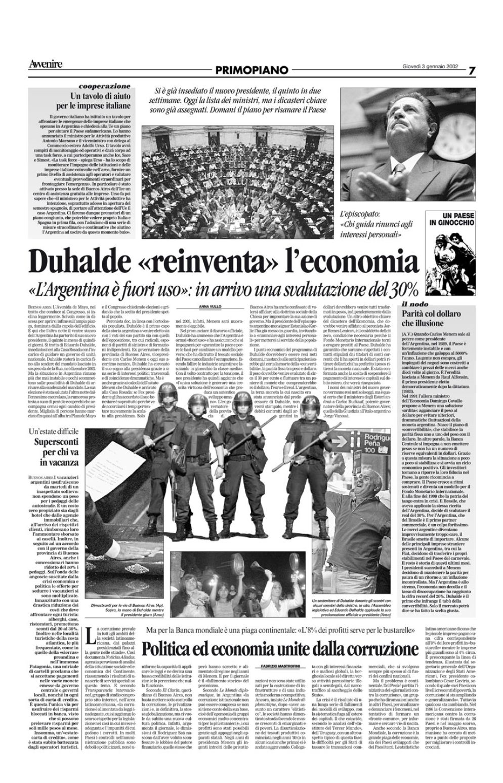 Comincia così, con iniziative clamorose, il 2002. Si apre con un mese di gennaio che vede gli italiani impegnati a calcolare a ogni spesa l’equivalenza tra la lira e l’euro appena entrato in circolazione. Qualcuno si sente più ricco, altri più poveri. C’è già chi approfitta per fare mille lire uguale un euro, e ancora oggi ne paghiamo le conseguenze. Andrà a finire come in Argentina, che il 2 gennaio fa default e non paga più i titoli che ha emesso? Via, mica siamo il Sudamerica; noi siamo in Europa, nell’alleanza occidentale, nella Nato. Infatti il giorno 15 mandiamo un contingente militare in Afghanistan, giusto per offrire un contributo all’esportazione della democrazia. Si mobilitano gli inviati delle varie testate.