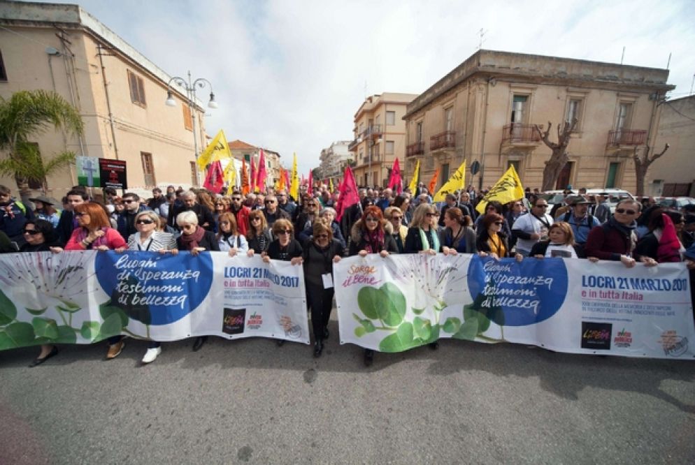 In testa al corteo ci sono i familiari delle vittime che reggono due striscioni di Libera con lo slogan della Giornata di quest'anno: "Luoghi di speranza, testimoni di bellezza". Dietro di loro una grande bandiera della pace portata da ragazzi migranti minorenni giunti in Calabria a bordo di barconi nei mesi scorsi. Ad assisterli il mediatore culturale Franck Mba, camerunense, arrivato a Milano nel 2002 e poi trasferitosi nella Locride proprio per aiutare i giovani migranti minorenni. I ragazzi stanno seguendo corsi di alfabetizzazione e di italiano. A seguire i gonfaloni, le autorità e migliaia di persone giunte da tutta Italia.