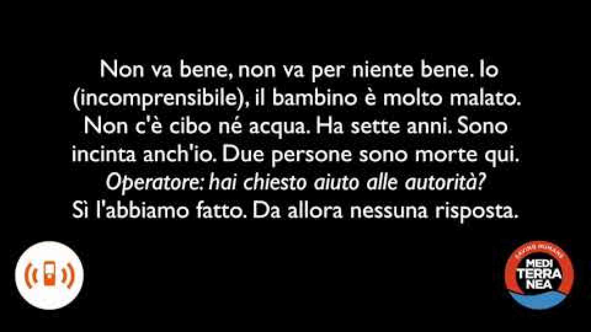 Nel drammatico audio raccolto da Alarm Phone si ascolta la testimonianza di una donna di 21 anni, incinta, a bordo di una delle imbarcazioni in avaria con il figlio di 7 anni. Le condizioni del mare stanno peggiorando e di loro non c'è ancora alcuna altra notizia certa.