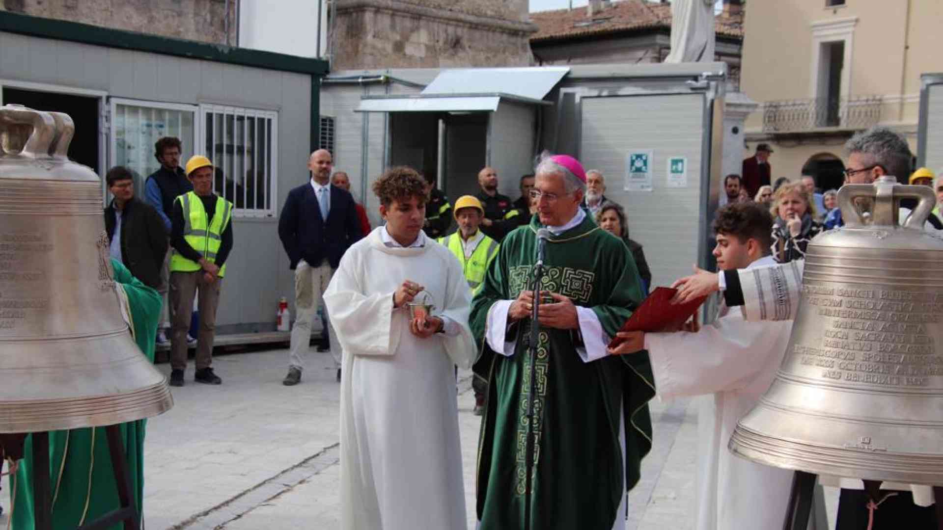 Una campana che torna a suonare, anche se all’aperto. La messa, per la prima volta dopo il sisma di sette anni fa, che viene celebrata all’interno della basilica di Norcia, nonostante sia ancora in parte un cantiere. È il segno di speranza che si è voluto dare nell’anniversario della scossa che nel 2016 colpì l’Umbria – dopo quella del 24 agosto di Amatrice e Arquata del Tronto – nel piccolo borgo umbro dove oggi qualche commerciante è tornato ad occupare non senza difficoltà il centro storico. E dove ora si è tornati anche a celebrare la messa.