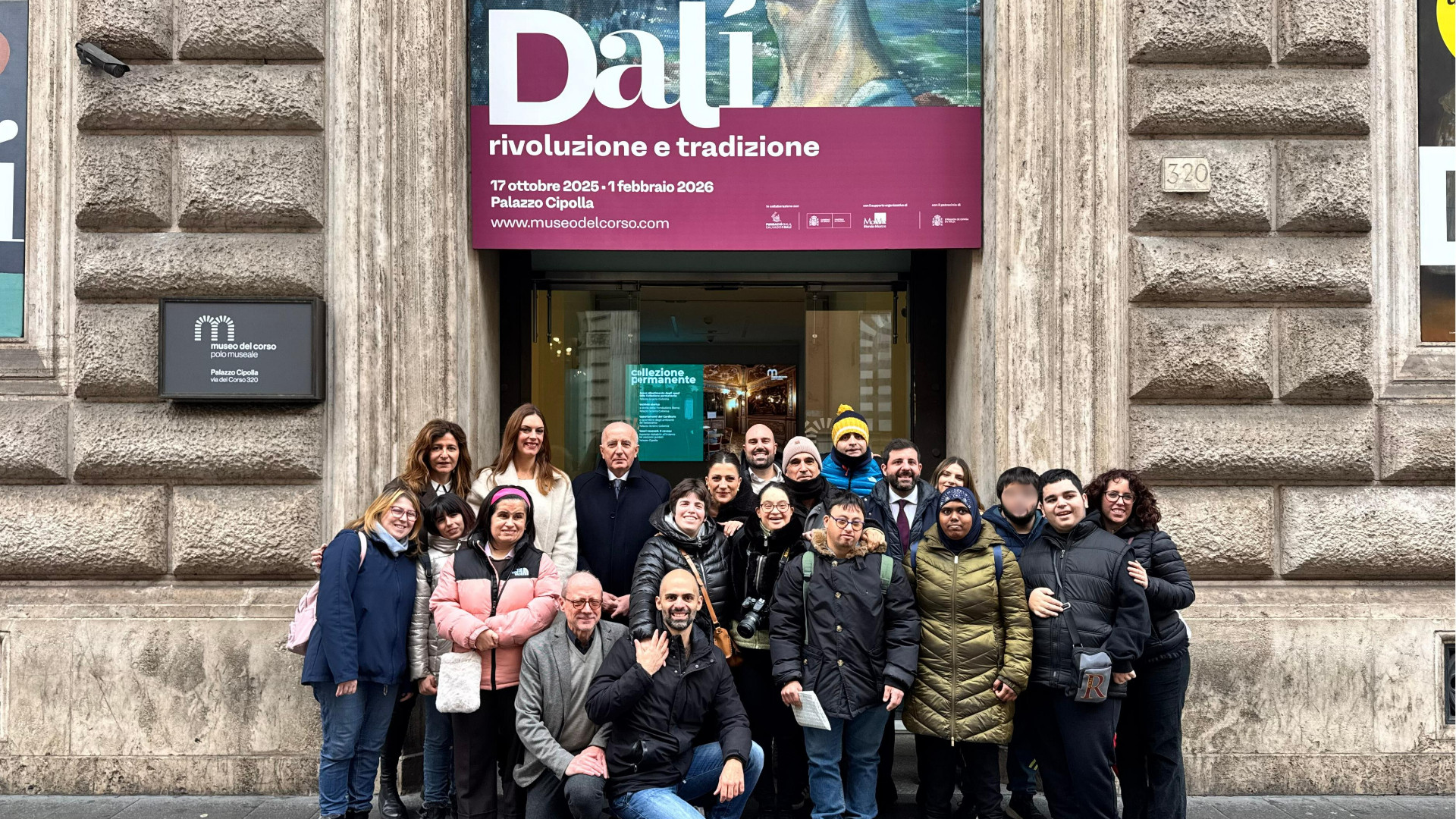 La prima visita culturale si è svolta lunedì 19 gennaio al Polo museale – Museo del Corso presso Palazzo Cipolla, grazie a un’apertura straordinaria della mostra “Dalì. Rivoluzione e tradizione”. I partecipanti sono stati accompagnati da una guida psicologa che, in collaborazione con gli educatori, ha costruito un percorso di visita appositamente pensato per il gruppo. Durante la mattinata, si è unita alla passeggiata, testimoniando adesione al progetto, anche l’attrice Francesca Valtorta.