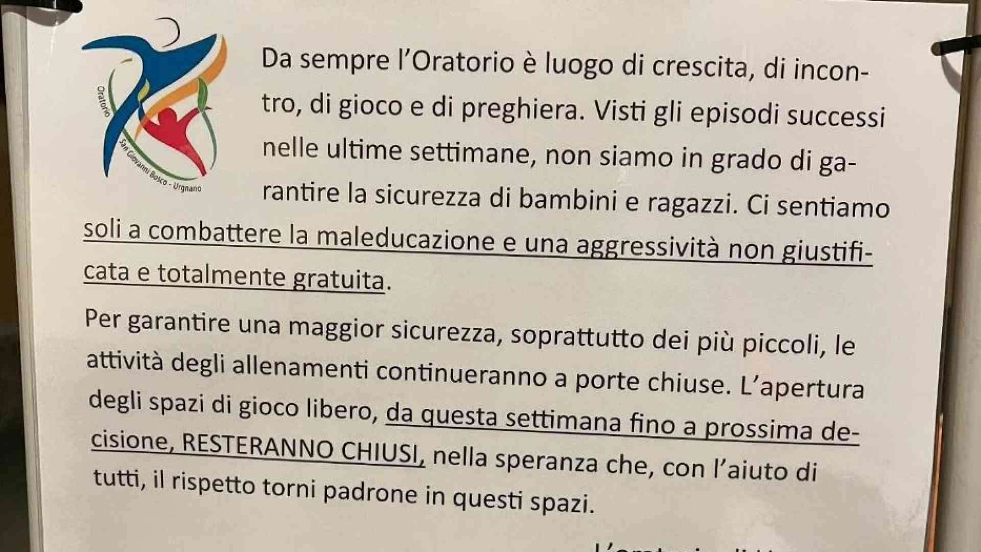 Dopo questa aggressione, il vicario don Davide Milani ha detto basta e dichiarato off limits il campetto: l’oratorio resta aperto per catechesi e incontri, così come per gli allenamenti, che però si svolgono a porte chiuse. «Almeno fino a giovedì prossimo - dice ad Avvenire - quando incontreremo l’amministrazione comunale. Vogliamo sensibilizzare chi di dovere a prendersi cura della situazione. Quello che è successo è inaccettabile: l’oratorio non può essere teatro di violenza né di discriminazione. Proprio in questi giorni abbiamo il vescovo Beschi in visita pastorale: gli chiederemo consigli su come comportarci». Amara la riflessione di don Milani: «Credo che la comunità educante esca sconfitta da questa vicenda. Sono dispiaciuto anche per il totale disinteresse delle famiglie di questi ragazzi: sono del tutto assenti e non si preoccupano minimamente del loro comportamento».