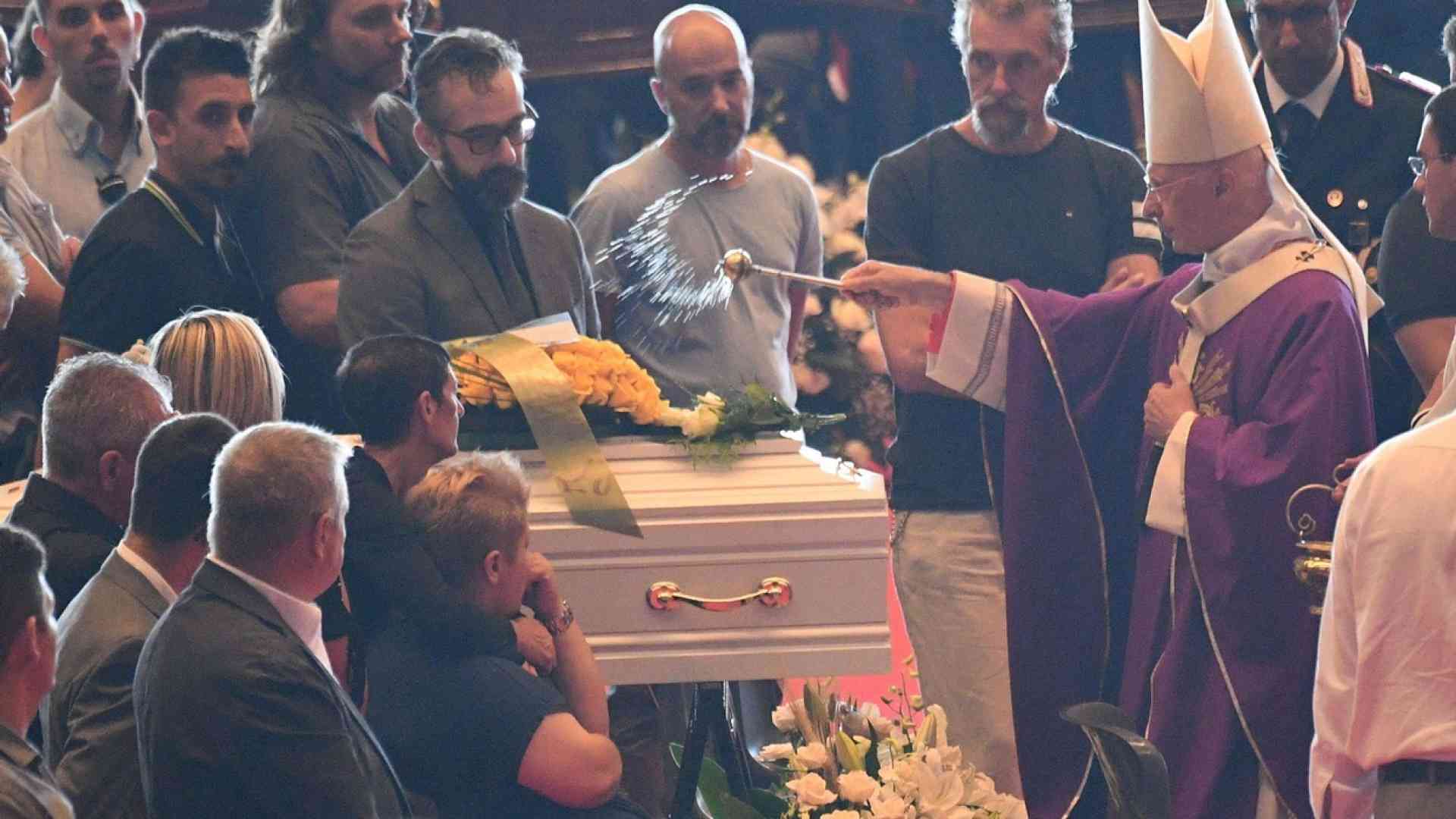 Appena dietro il feretro di Samuele ci sono le bare del padre e della madre, e poi, messe quasi a semicerchio, altre 16 bare. Per queste vittime, quattro delle quali francesi, due albanesi, un colombiano e due cileni, alle 11:30 sono stati celebrati i funerali di Stato, alla presenza delle autorità dello Stato e di decine di sindaci. Presenti anche i vertici di Autostrade per l'Italia, che nel pomeriggio hanno indetto una conferenza stampa a Genova.