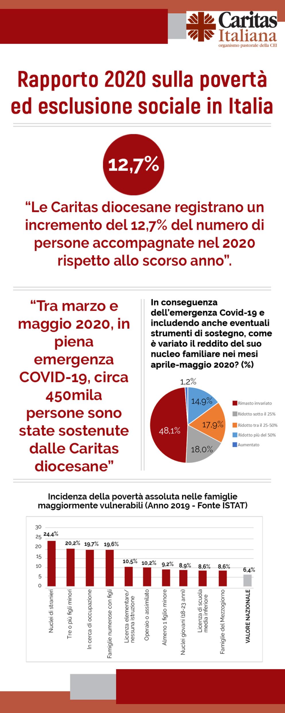 Presentato il Rapporto 2020 povertà ed esclusione sociale intitolato "Gli anticorpi della solidarietà". Registrato un incremento del 12,7% del numero di persone seguite rispetto allo scorso