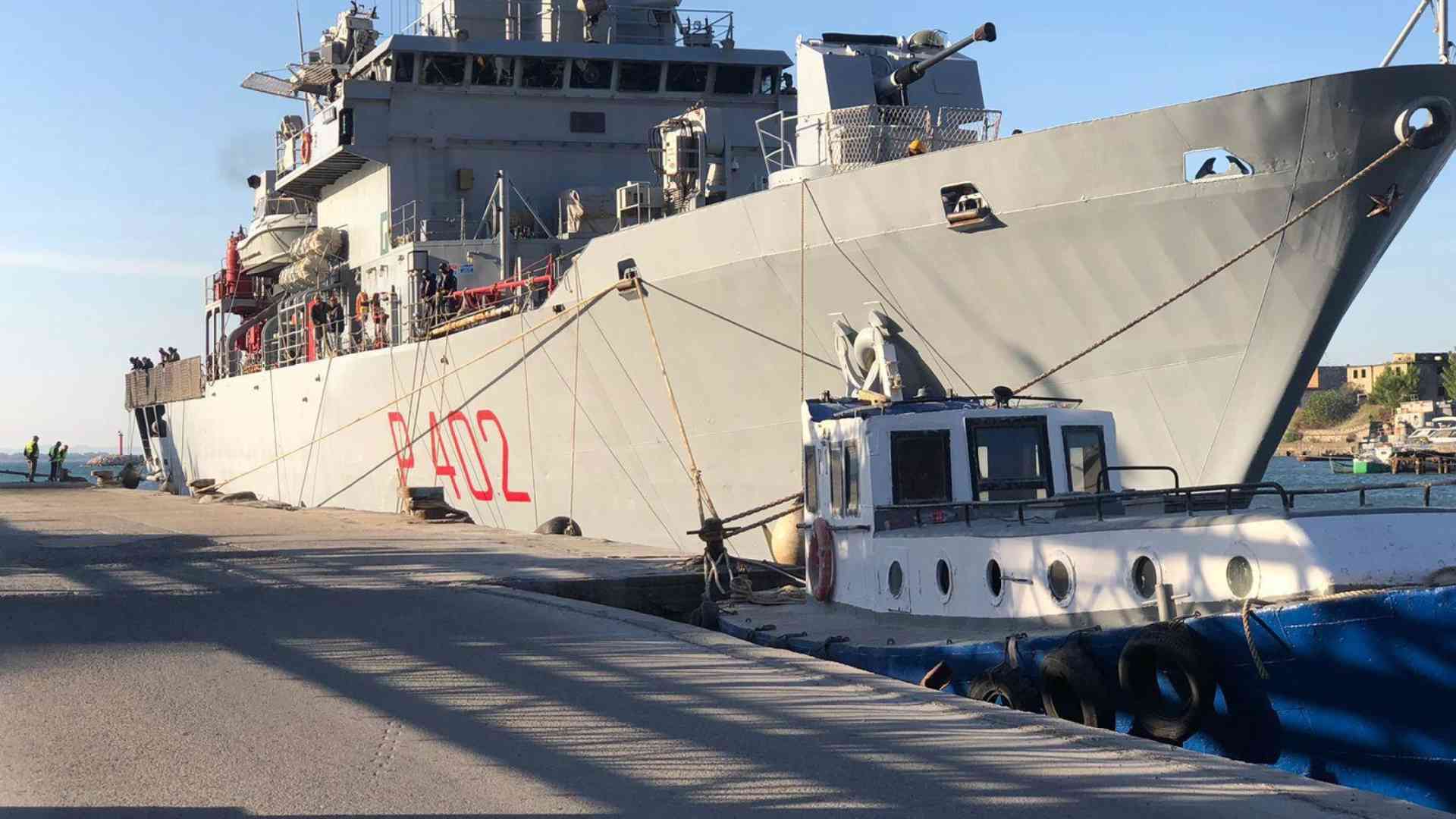 Ansa | La nave Libra della Marina Militare nei giorni del primo approdo in Albania