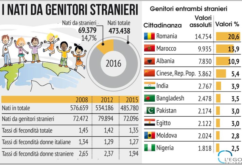 Quanti sono i bambini nati in Italia da genitori stranieri? Da quali comunità provengono? E qual è il contributo che l’immigrazione stabile dà alla nostra situazione demografica? Mentre infuria la polemica sull’opportunità o meno di concedere la cittadinanza ai bambini stranieri nati nel nostro Paese (o che qui hanno studiato), è utile analizzare anzitutto i numeri per come si possono desumere dai rapporti Istat su 'Natalità e fecondità della popolazione residente' e dal 'Bilancio demografico nazionale'.