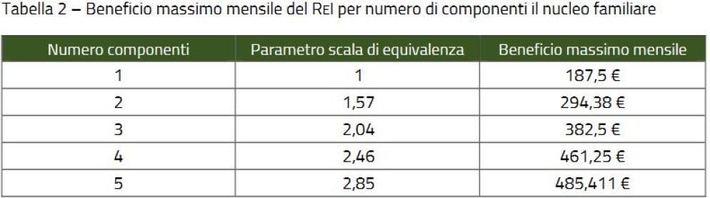 La cifra è variabile in base alla condizione reddituale, al numero dei componenti il nucleo e al luogo di residenza. Il parametro indicativo può essere quello della soglia di povertà assoluta anch’essa variabile. Quest'ultima per un singolo oscilla tra 552 euro al mese per chi abita in un piccolo comune nel Mezzogiorno a un massimo di 819 euro mensili per chi risiede in un grande centro del Nord, per una famiglia di 4 persone da 1.098 a 1.534 euro. Il contributo monetario, erogato su dodici mensilità, andrà da 187 euro per una persona singola a un massimo di 485 euro mensili per un nucleo familiare di 5 o più componenti. Per l'erogazione verrà utilizzata una carta di pagamento, con la quale sarà possibile fare acquisti tramite Pos in tutti i supermercati, farmacie e parafarmacia e negozi alimentari, prelevare contanti fino alla metà dell'importo del ReI (e non oltre 240 euro), pagare bollette elettriche e del gas negli uffici postali. Darà diritto a uno sconto del 5% nei negozi convenzionati. Gli importi verranno accreditati il 27 di ogni mese.