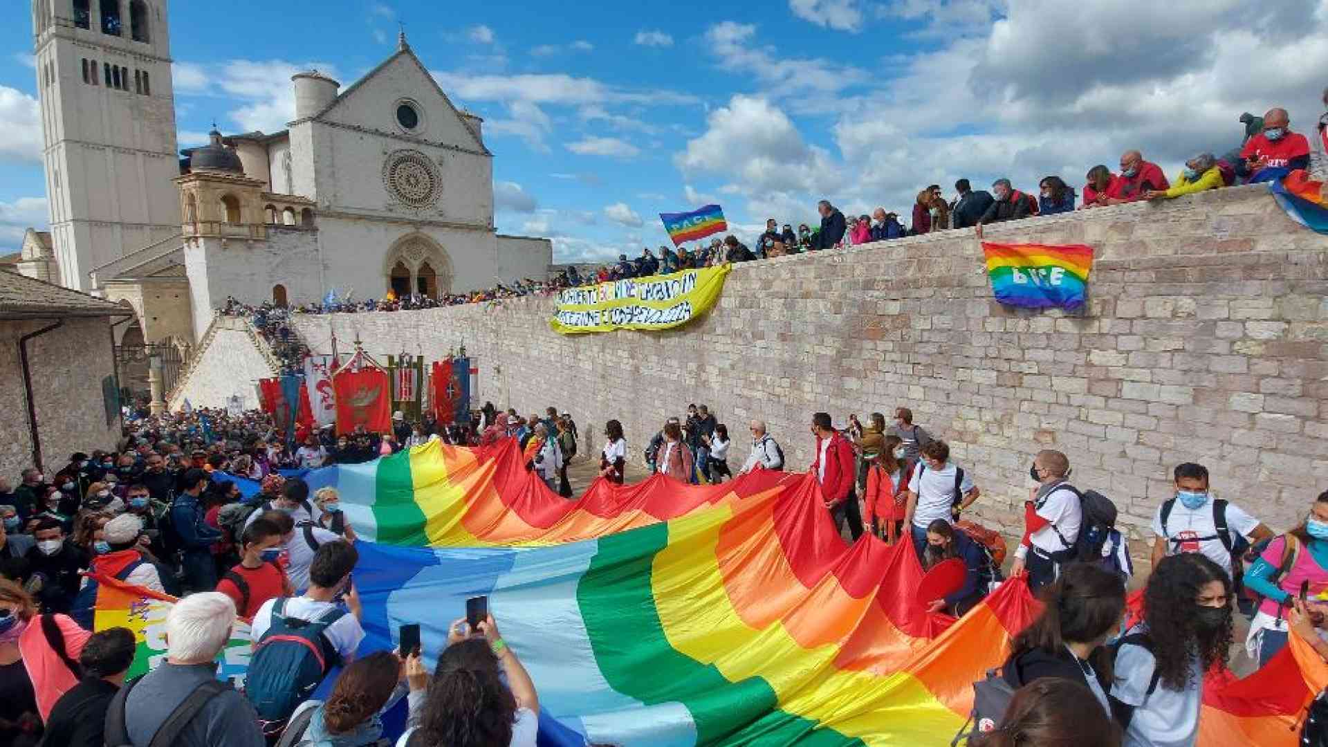 Alla Rocca di Assisi la conclusione della marcia, con gli interventi dei ragazzi. A loro verrà consegnata la bandiera della pace dalle mani di Gianfranco Pagliarulo, presidente dell'Anpi, come «segno di alleanza intergenerazionale». Davanti al Sacro Convento, in chiusura della Marcia, anche la firma dei rettori di 20 atenei italiani - tra cui Roma, Torino, Pisa, Padova, Ancona e Parma - per «un patto educativo per la formazione delle nuove generazioni». Concluderà la giornata Alessandro Bergonzoni con un "appello corale alla pace"per il "patto di Assisi" per la formazione delle nuove generazioni. Chiuderà con un personalissimo "appello corale alla pace" Alessandro Bergonzoni.