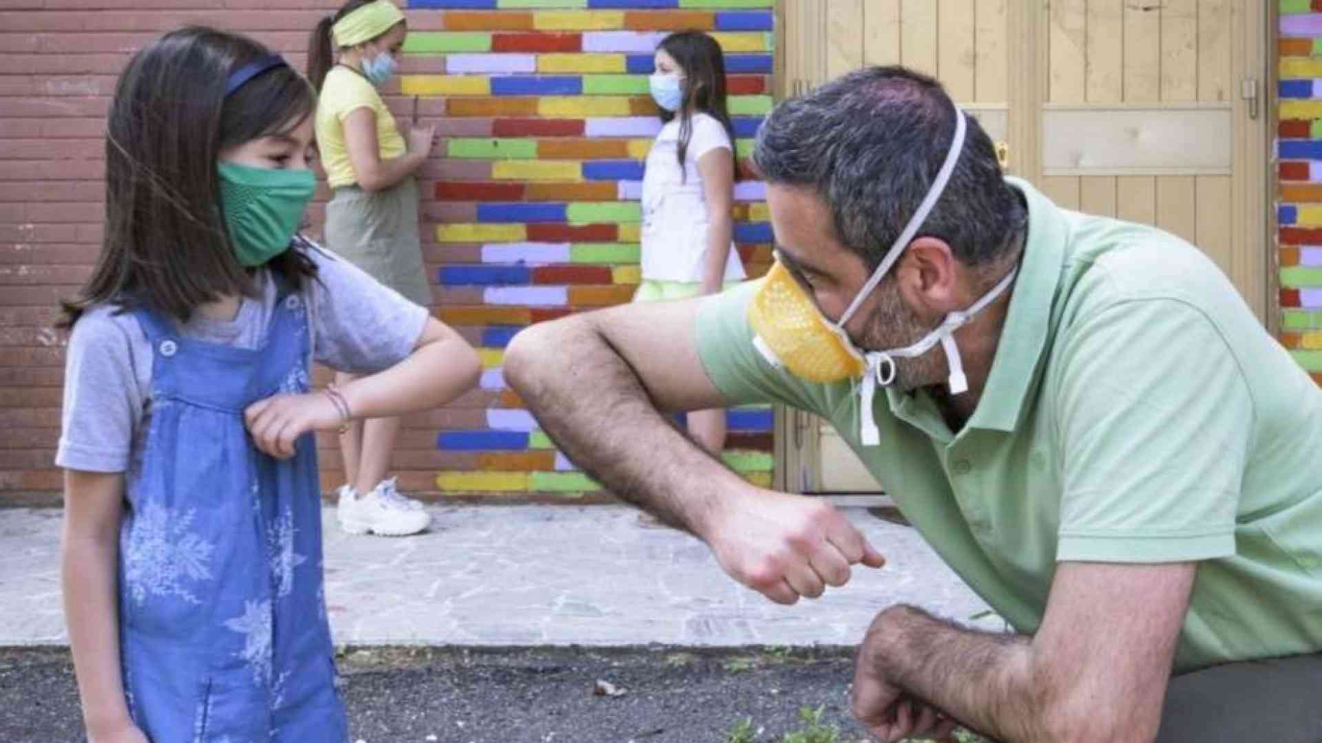 Il saluto tra un adulto e una bimba ai tempi del Covid