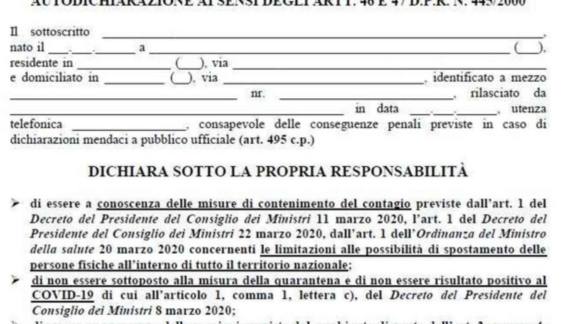 Ecco il nuovo modulo per l'autocertificazione degli spostamenti