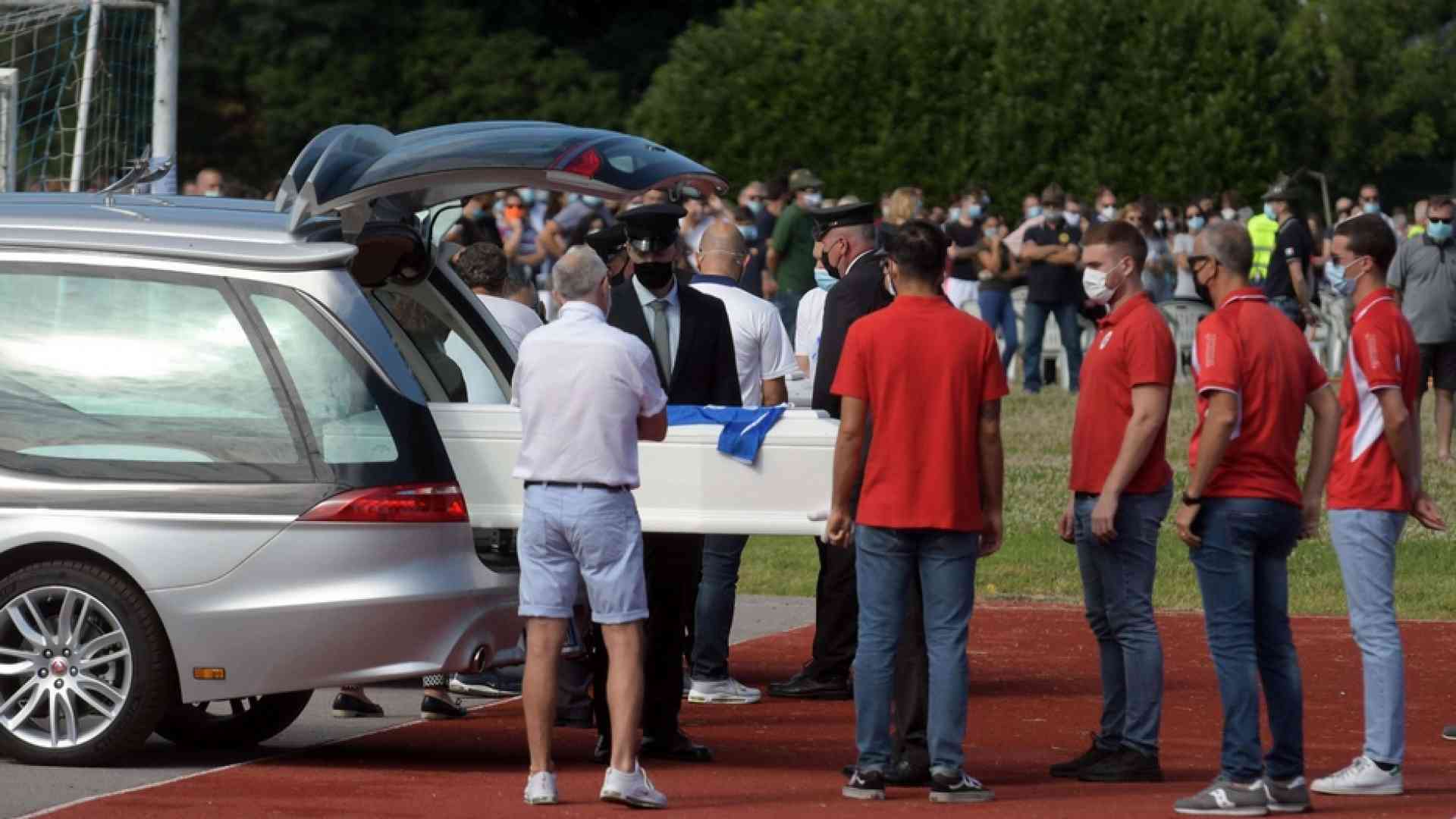 Il rito funebre si è concluso con tanti palloncini bianchi liberati in cielo. Le due bare bianche sono state accompagnate lungo il campo sportivo, in cui si erano radunate centinaia di persone commosse e molti ragazzini e amici, con le note di "Ogni volta" di Vasco Rossi e "No One But You" dei Queen. Applausi anche dalle tante persone rimaste fuori dal campo per evitare assembramenti.