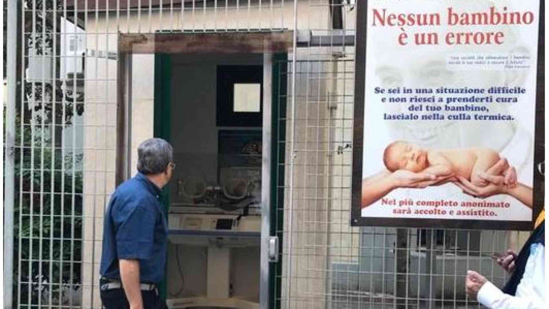 Sulle grate che circondano il piccolo locale dove si trova la culla termica, in via Arcidiacono, vicino alla chiesa, campeggia un manifesto con la scritta «Nessun bambino è un errore. Se sei in una situazione difficile e non riesci a prenderti cura del tuo bambino, lascialo nella culla termica. Nel più completo anonimato, sarà accolto e assistito».