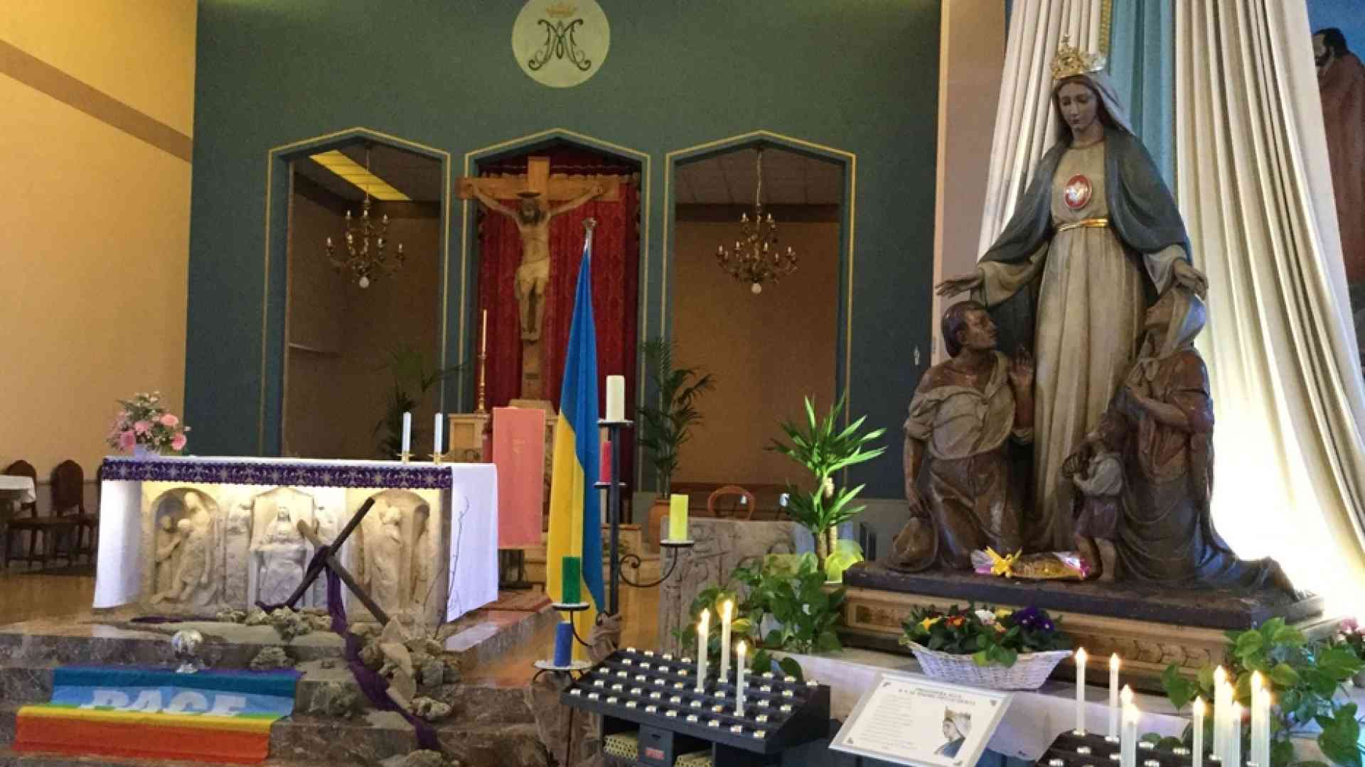 Ogni mattina, alle 7 in punto, Yuri va ad aprire la porta del santuario di Strà e gira la pagina del lezionario sulle letture del giorno. Ai piedi dell’altare, i volontari della parrocchia della Valtidone, sulle colline piacentine, hanno collocato una bandiera della pace. A lato, accanto alla statua della Vergine, c’è quella gialloblù dell’Ucraina. Una preghiera invita ad affidarsi a Maria: «Le difficoltà non spengano il coraggio, né la tristezza la gioia del cuore».