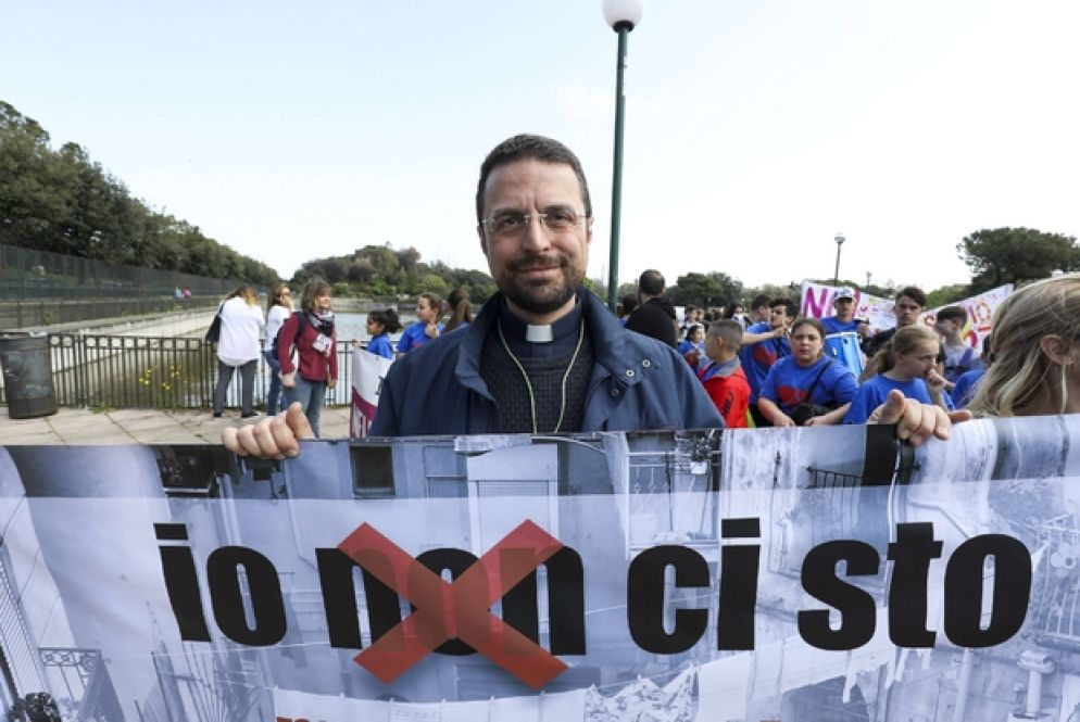 (Nella foto padre Modesto Bravaccini, parroco della chiesa di San Giuseppe e Madonna di Lourdes che ha partecipato alla Marcia "Io non ci sto" contro la stese di camorra: i cittadini scendono in strada per dire no alla criminalità)