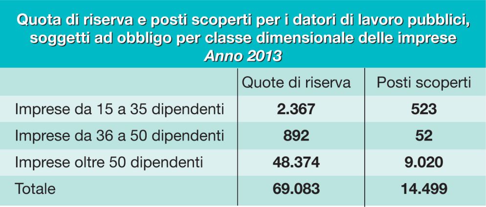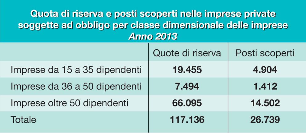 Al di là dei singoli casi e delle valutazioni sulle riforme, ciò che resta incontrovertibile, purtroppo, è la difficoltà all’inserimento lavorativo delle persone con disabilità. Come dimostrano i dati delle tabelle che pubblichiamo qui a fianco (riferite al 2013, anno dell’ultimo monitoraggio Isfol) e che si riassumono in due cifre: a fronte di 676mila iscritti al collocamento obbligatorio, solo 18mila hanno trovato lavoro in un anno, di cui appena 6mila a tempo indeterminato. Si tratta di meno dell’1% di coloro che sono disponibili a lavorare e questo nonostante, come mostrano sempre le tabelle qui sopra, siano diverse decine di migliaia i posti "vacanti" delle quote riservate ai disabili sia nelle imprese private sia in quelle pubbliche.