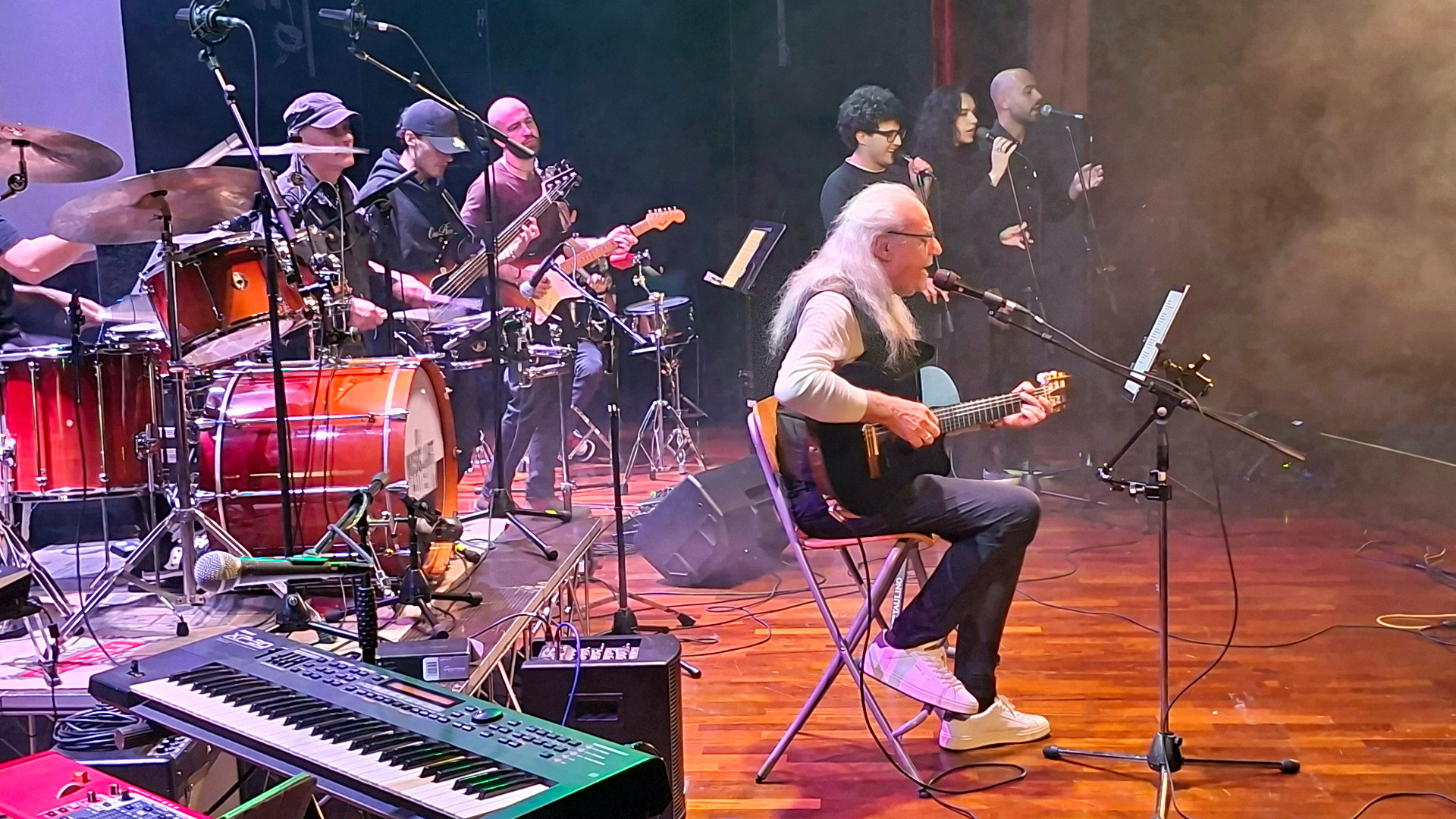 Quando sul palco salgono Franco Mussida, storico fondatore della “Premiata Forneria Marconi”, e la dozzina di giovani strumentisti che lo accompagnano, il pubblico è già reduce da cinque ore di musica ininterrotta, ma l’ovazione dice tutta l’energia ancora vibrante in sala. Al Teatro Rosmini di Borgomanero (Novara) domenica scorsa, giorno di San Francesco, è andato in scena qualcosa che è difficile definire: un concertone per Gaza? Di più. Una maratona musicale con 90 artisti, tutti qui gratuitamente per raccogliere i fondi da inviare a Caritas Gerusalemme e a Medici senza Frontiere in Terra Santa? Di più. Perché – ci avevano avvertiti gli organizzatori del “Borgo Live Aid for Gaza” – «chi ha acquistato il biglietto non sarà solo uno spettatore ma parte attiva di un cambiamento».