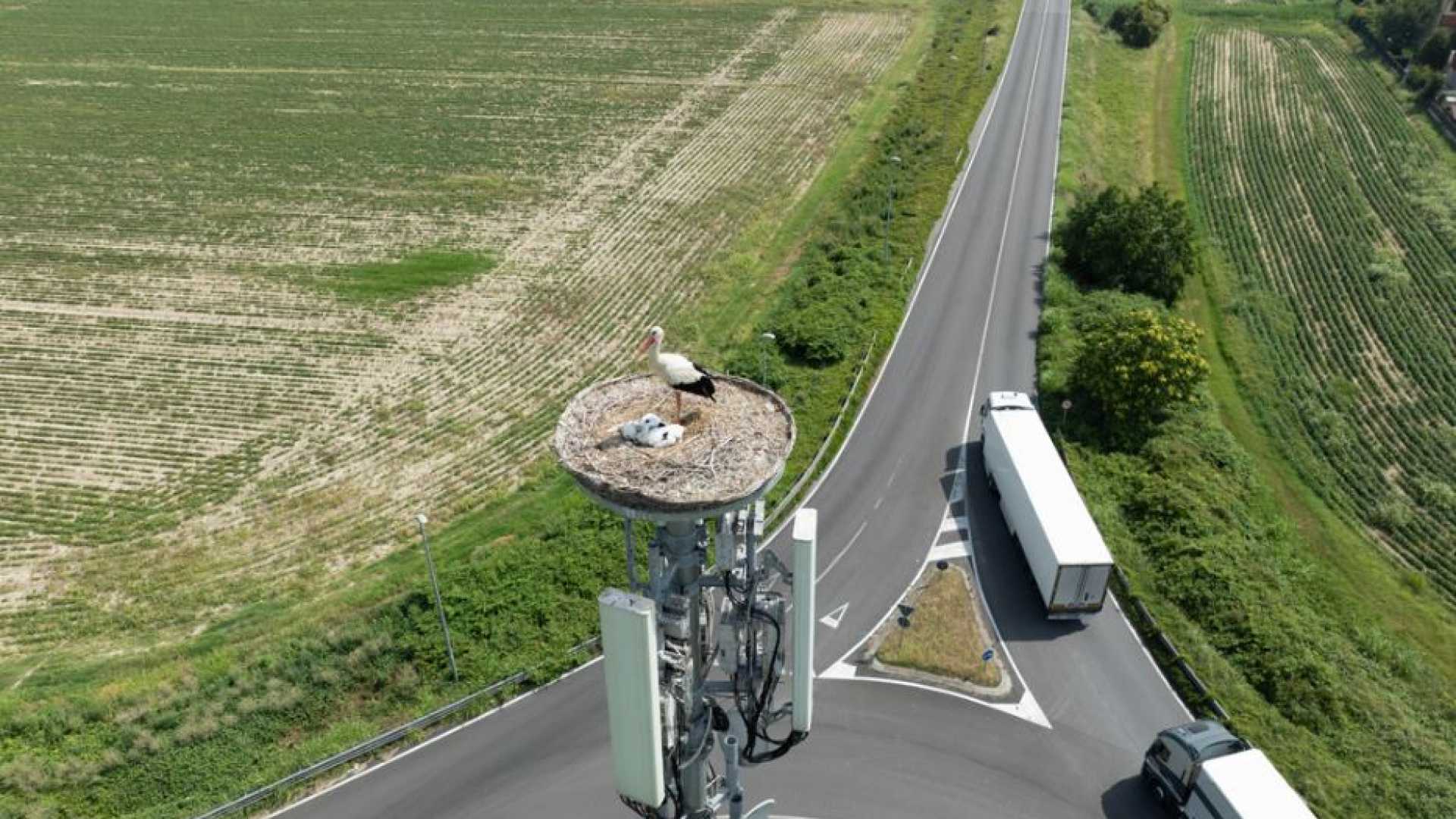 Nel 2018 è partita una sperimentazione 5G con operatori privati, grazie all’utilizzo di 41 stazioni in aree dismesse, generando ricavi senza costi pubblici. A Carpiano, un caso simbolico di integrazione tra innovazione e natura: su una torre faro di 38 metri, usata per la trasmissione del segnale, è stato installato un nido che da anni ospita una coppia di cicogne e i loro piccoli, schermati dalle antenne.