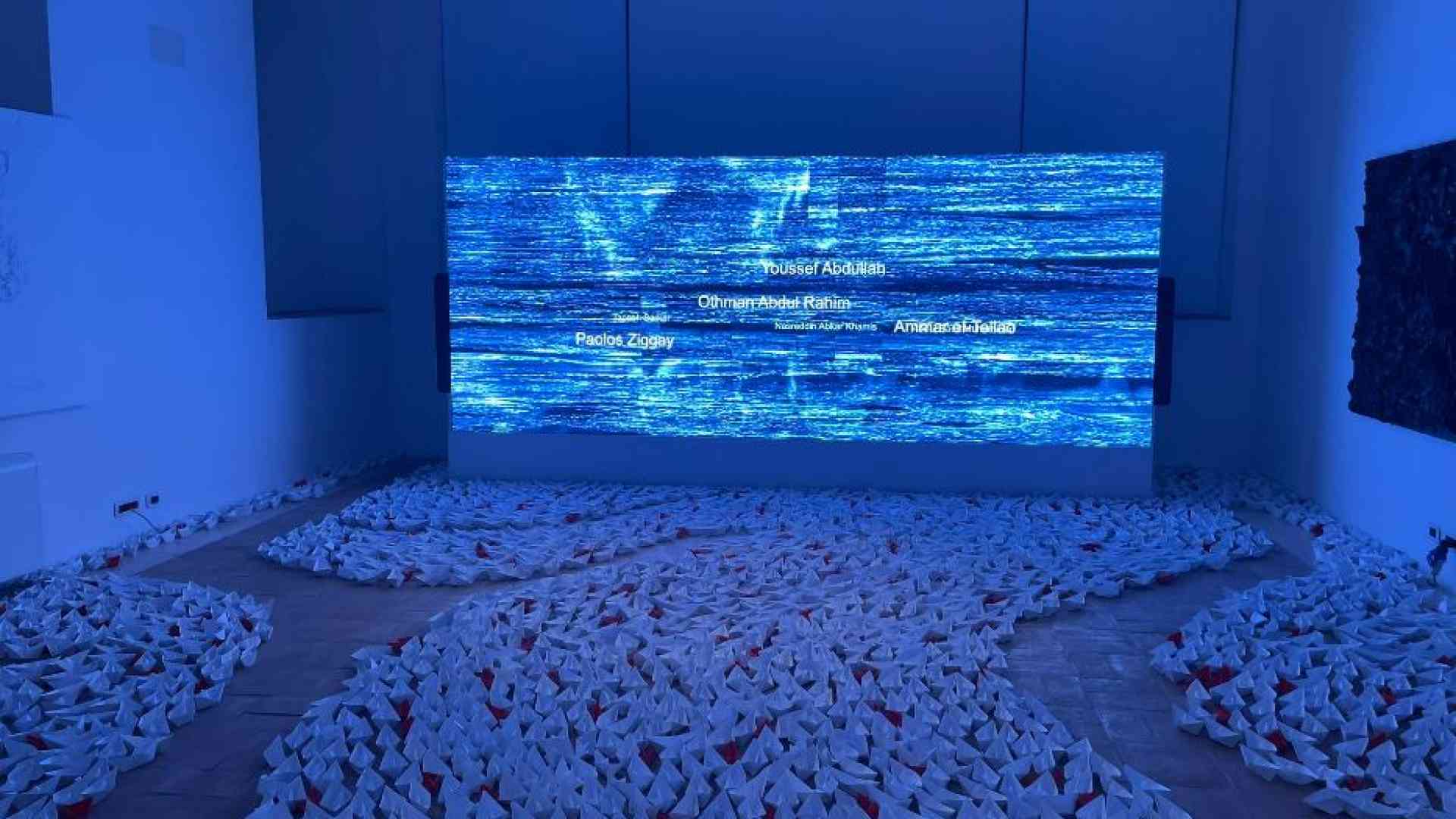 Migliaia di barchette di carta. 3.129 per l’esattezza. Fragili come i migranti (bambini e adulti) che hanno perso la vita nel 2023 nel Mediterraneo e lungo la rotta balcanica. In fuga da guerre, povertà ed emergenze climatiche. I loro nomi scorrono su un mare digitale. Le onde si frantumano, cambiano colore. Il rosso sangue è quasi accecante. Poi si trasformano completamente, fino a diventare irriconoscibili. Rimangono solo righe e quadrati a fare da sfondo.