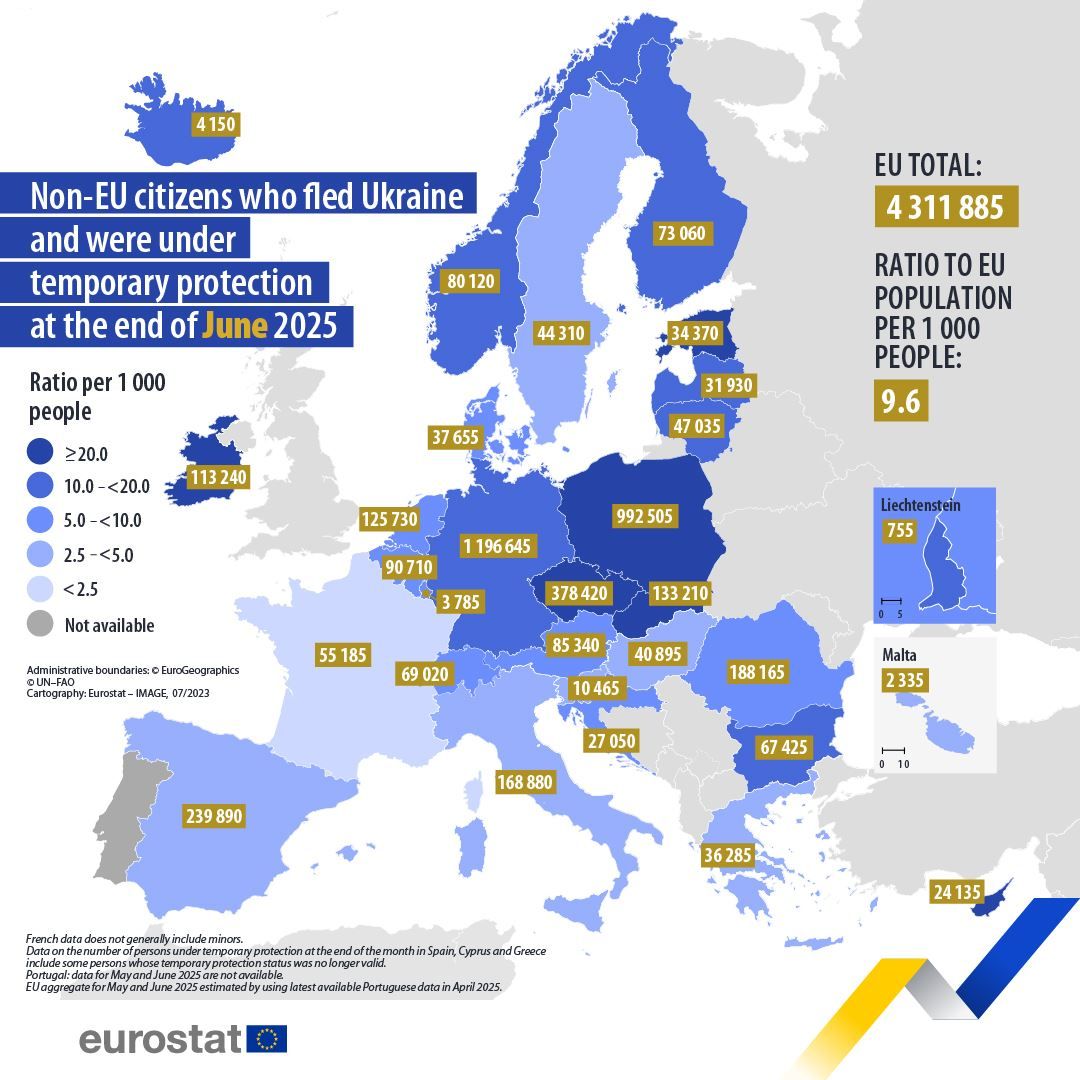 Così a giugno l’Ue ha prorogato fino al marzo del 2027 il diritto a questa particolare forma di protezione, introdotta da una direttiva del 2001 dopo gli sfollamenti su larga scala seguiti alle guerre nei Balcani occidentali, ma all’epoca mai impiegata. È scattata per la prima volta proprio per gli ucraini, in tempi record, meno di dieci giorni dopo l'invasione russa del 24 febbraio 2022. A ospitare la metà dei beneficiari sono due Paesi, la Germania, dove si trovano oltre 1.196.000 persone, e la Polonia con circa 992.000 rifugiati ucraini. Segue, a distanza, la Repubblica Ceca con 378.000 titolari, mentre l’Italia sta accogliendo “solo” 168.800 ucraini con questo tipo di status.