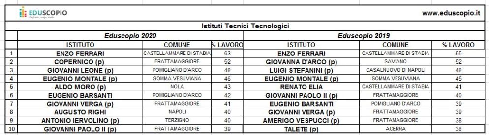 A Napoli, il “Suor Orsola Benincasa” è al secondo posto tra i licei artistici e al quarto tra i linguistici, mentre a Torino il “Valsalice” è secondo tra gli scientifici.