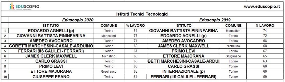 Paritarie sugli scudi anche tra gli istituti tecnici e professionali, con il “Collegio Ballerini” di Seregno, in Brianza, che primeggia nel settore dei Servizi, con un tasso di occupazione tra i diplomati a due anni dal termine degli studi del 75%, mentre a Bologna, il “Beata Vergine di San Luca” è il miglior Istituto professionale industria e artigianato, con un’occupazione dell’87%. A Roma, il paritario “Safi Elis” è il primo istituto professionale di Servizi, con un tasso di occupazione del 68% e a Torino, l’“Edoardo Agnelli” è il miglior Tecnico tecnologico con l’81% dei diplomati che hanno lavorato per almeno sei mesi nei due anni successivi al termine degli studi.
