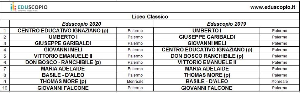 Anche a Palermo il liceo classico migliore è paritario. Si tratta del “Centro educativo ignaziano”, con il “Don Bosco-Ranchibile” al sesto posto e il “Thomas More” al nono.