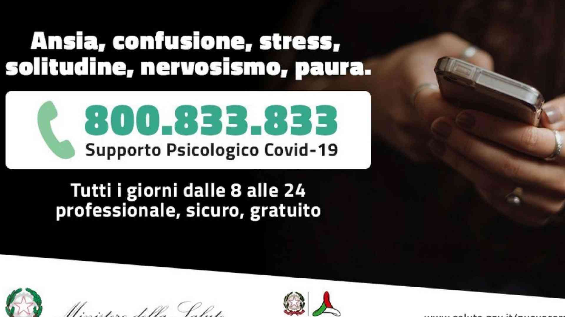 Una telefonata per chiedere, e ricevere, supporto emotivo durante lo stress dell'isolamento in casa e per non pochi, purtroppo, del lutto. Il numero da chiamare, gratuito e sicuro, messo a disposizione dal ministero della Salute e dalla Protezione civile, è l'800.833.833, attivo tutti i giorni dalle 8 alle 24. Risponderanno professionisti specializzati, psicologi, psicoterapeuti e psicoanalisti. Sono previste modalità di accesso per i non udenti e si potrà chiamare anche dall'estero (in tal caso al numero 02.20228733). Il servizio è attivo da oggi, informa il ministero, e coinvolge oltre 2mila professionisti specializzati. Il sostegno tecnologico è offerto gratuitamente da Tim.