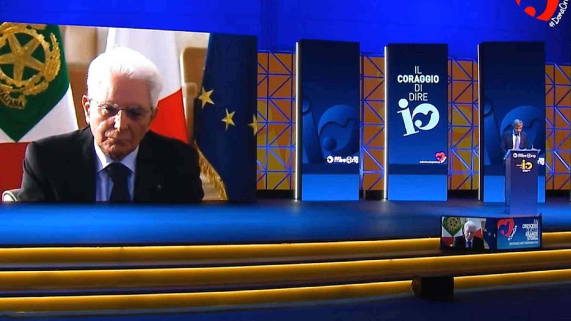 Il Meeting dell’«io» che si apre al «noi». Sergio Mattarella inaugura l’edizione numero 42, con un intervento in collegamento dal Quirinale, cinque anni dopo la sua venuta a Rimini ad aprire l’edizione del 2016. Il tema era – allora – «Tu sei un bene per me», stavolta invece una frase di Kierkegaard («Il coraggio di dire io») viene usata per segnare un punto di speranza, di ripartenza dopo il buio della pandemia. Esprime la sua «soddisfazione», Mattarella, con gli organizzatori per aver avuto il «coraggio» di tener fede all’impegno di tornare «in presenza». E si rivolge a Bernhard Scholz, Presidente della Fondazione Meeting che gli aveva ricordato il tema di 5 anni fa. Ci vede una «evidente connessione». Sono trascorsi «cinque anni intensi», ricorda il capo dello Stato. Di mezzo ci si è messo «un virus temibile e sconosciuto». Che ci ha insegnato come «avere il coraggio di dire io» richiami la «necessità di rivolgersi ad altri, a uno o a tanti tu». E ci richiama alla «responsabilità» di «riconoscere gli altri per comporre il noi della comunità», perché «il futuro non può essere costruito che soltanto insieme», la «missione» è quella di riscoprire il rapporto con «i tanti tu che incontriamo».