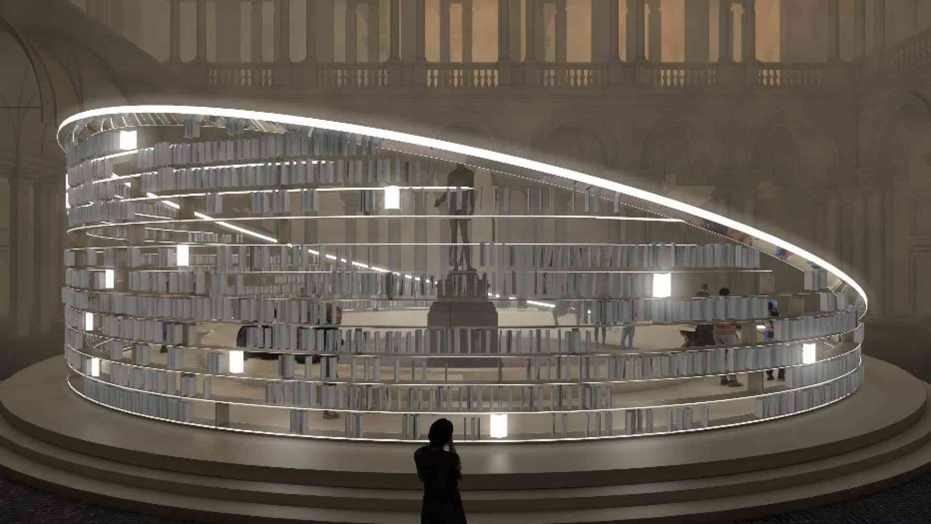 La scultura luminosa e rotante progettata da Devlin si trova al centro del seicentesco Cortile d’Onore, che collega la Pinacoteca di Brera, la Biblioteca Nazionale Braidense e l’Accademia di Belle Arti. Ogni giorno alle ore 20, i visitatori potranno ascoltare letture “recitate” dalla libreria stessa e sfogliare i libri presenti.
