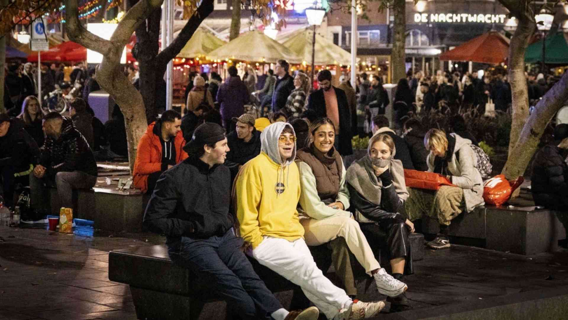 Epa, Ansa | Ragazzi all'aperto senza mascherina, ad Amsterdam, dopo la chiusura dei locali fissata alle 20 dal governo