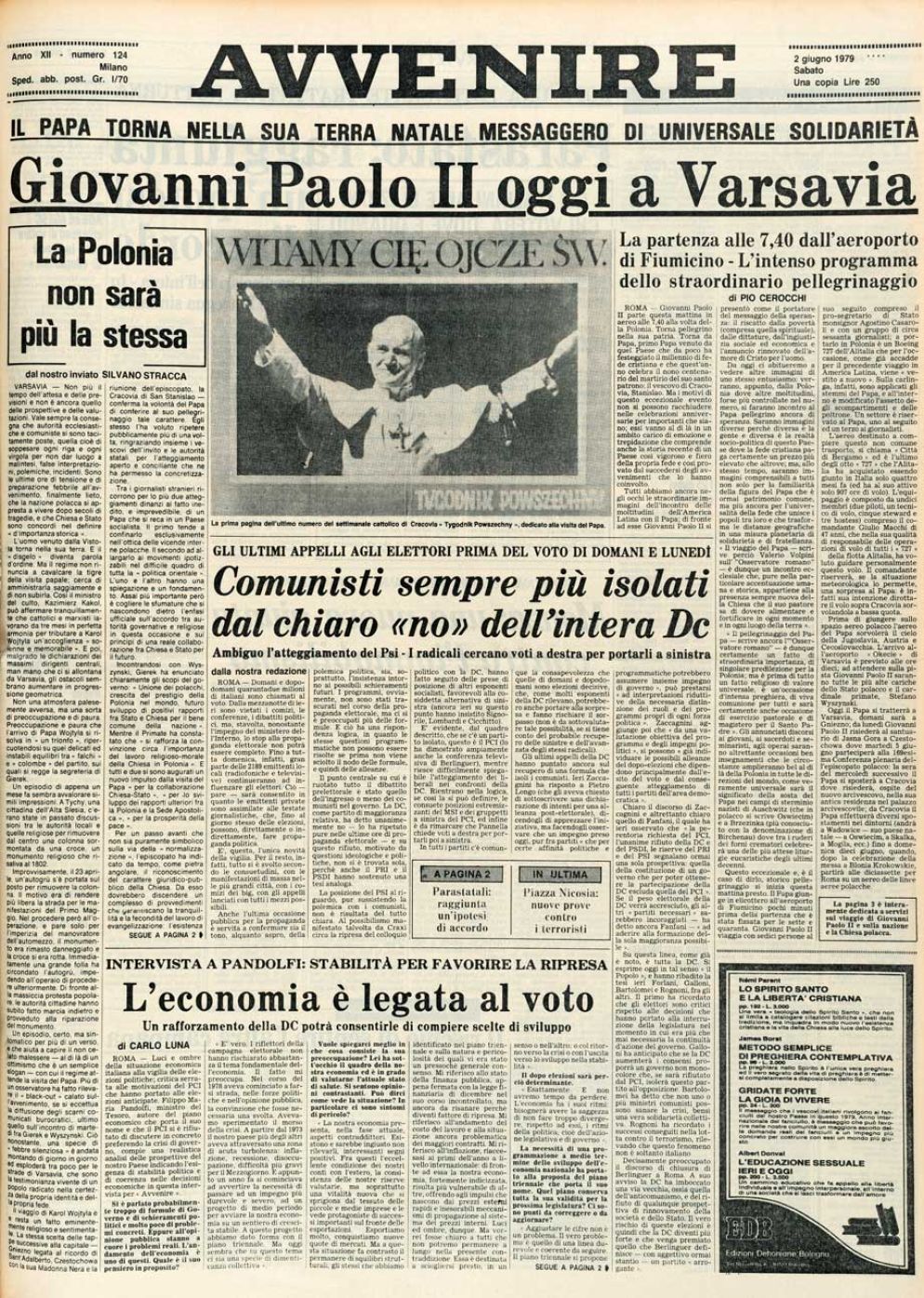 Dicevamo di Avvenire: le grandi mutazioni non risparmiano noi, che cominciamo a mandare in pensione le macchine da scrivere. Inizia l’era del computer; gradualmente, assieme alle macchine da scrivere, andrà in pensione anche il piombo della tipografia per lasciare spazio alla fotocomposizione. Piombo o non piombo, come giornale cattolico non possiamo però non riservare puntuale attenzione all’esordio della missione pastorale del nuovo papa Giovanni Paolo II. A tre mesi dall’elezione al soglio di Pietro papa Wojtyla parte il 25 gennaio per un viaggio apostolico, il primo di una lunga serie. Meta il Centro America: Repubblica Dominicana, Messico e Bahamas: nel cuore del viaggio partecipa al terzo incontro dell’episcopato latinoamericano a Puebla, mentre dal 2 al 10 giugno tornerà per la prima volta nella sua Polonia, salutato da milioni di connazionali. Prima della fine dell’anno, tra il 28 e il 30 novembre, il Papa sarà invece in Turchia: Ankara, Istanbul, Efeso e Smirne. Intanto il 4 marzo ha pubblicato la sua prima enciclica, la Redemptor hominis. E il 29 dicembre nominerà a sorpresa arcivescovo di Milano un padre gesuita, Carlo Maria Martini.