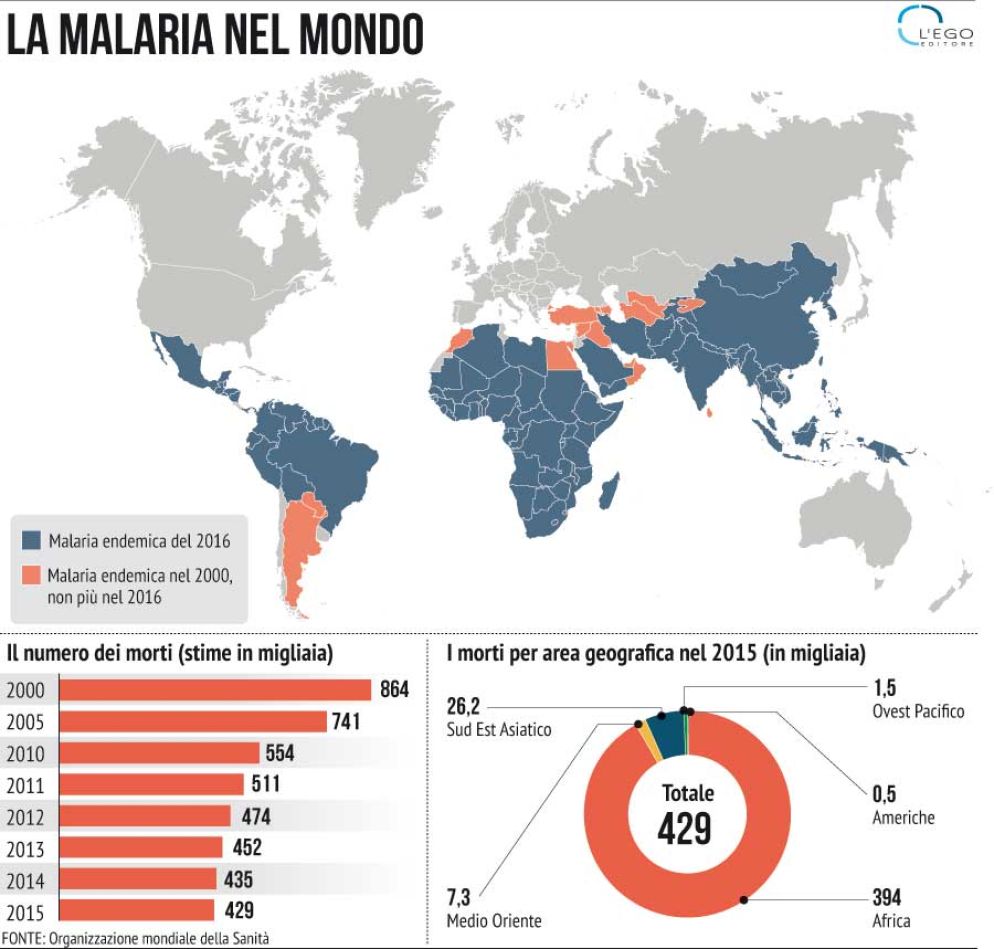 Negli ultimi anni la diffusione della malaria nel mondo è stata notevolmente ridotta grazie ai programmi di lotta e controllo promossi dall'Oms. Nell'aprile del 2016, I'Ufficio Regionale Europeo dell'Oms ha comunicato agli Stati membri l'eradicazione della trasmissione di malaria autoctona sul territorio della Regione Europea. Nelle aree tropicali e sub topicali la malaria rappresenta tuttora la più importante malattia trasmessa da vettore. Nell'ultimo rapporto sulla situazione mondiale della malaria, pubblicato dall'Oms, sono stati riportati 95 Paesi ancora con endemia malarica, circa 214 milioni di casi e 438 mila decessi nel 2015 secondo il World Malaria Report.