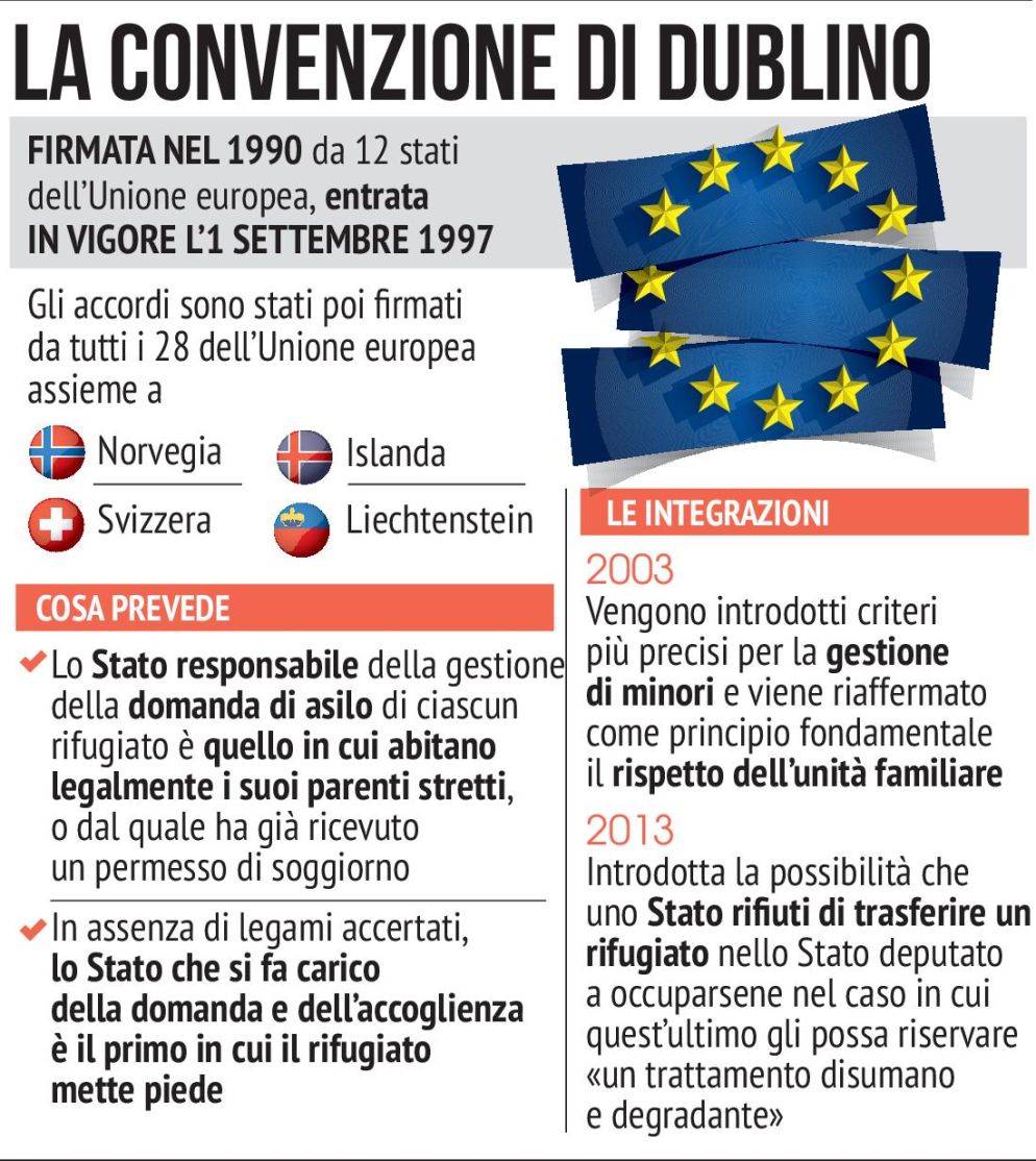 Oggi è in vigore il Regolamento Dublino III – siglato da tutti gli Stati membri, ad esclusione della Danimarca, e applicato da gennaio 2014 - che prevede che sia il primo Stato membro d’ingresso del migrante che opera la registrazione dello stesso attraverso le impronte digitali e la foto segnalazione, a prendersi in carico la procedura di espletamento della richiesta d’asilo.